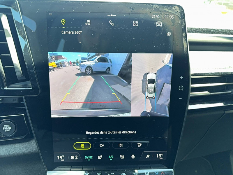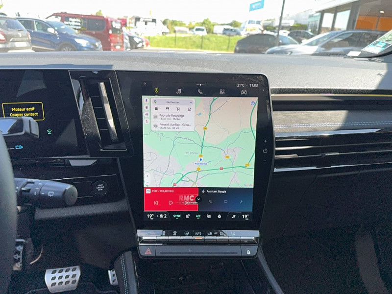 Avertisseur de sortie de stationnement en marche AR avec freinage d'urgence automatique / Commutation automatique des feux de route/croisement / Easy park assist et aides au parking AV, AR et latérale / Feux AR à LED avec effet 3D / Feux AV full LED Adaptative Vision / Jantes alliage 20" Daytona diamantées noir / Navigation Google Maps / Pack Design esprit Alpine extérieur / Pack Design esprit Alpine intérieur / Rétroviseurs extérieurs électriques à mémoire, dégivrants, rabattables automatiquement / Système Multimédia openR link 12" : navigation, services Google, audio Arkamys Auditorium / Volant cuir & Alcantara et surpiqûres bleu/blanc/rouge / 2 prises USB à l'AV et à l'AR / Active driver assist régulateur de vitesse adaptatif intelligent + centrage dans la voie / Airbags latéraux, milieu AV et rideaux / Alerte de distance de sécurité / Alerte franchissement de ligne et assistant maintien dans la voie / Appuie-têtes AV grand confort / Avertisseur d'angle mort et prévention sortie de voie en cas de dépassement / Banquette AR coulissante 1/3-2/3 avec accoudoir central / Barres de toit longitudinales / Caméra 3D vision 360° / Carte Renault accès et démarrage mains libres / Ciel de toit gris anthracite / Clignotants AR dynamiques / Conduite hybride prédictive / Console centrale avec repose main coulissant / Eclairage d'accompagnement au sol avec projection logo / Faux plancher de coffre / Frein de parking électrique avec fonction Auto-Hold / Freinage actif d'urgence urbain (piéton + cycliste + intersection) / Hayon motorisé main libre / Kit de gonflage / Lumière d'ambiance personnalisable / Miroir de surveillance enfants / Multi-sense / Pare-brise chauffant / Pré-équipement alarme / Rétroviseur intérieur électrochrome sans cadre / Seuil de portes / Siège conducteur électrique avec réglage lombaire et fonction massage, siège passager électrique / Sièges avec système ISOFIX / Sortie sécurisée des occupants / Tableau de bord full numérique 12,3'' / Volant chauffant