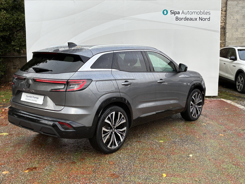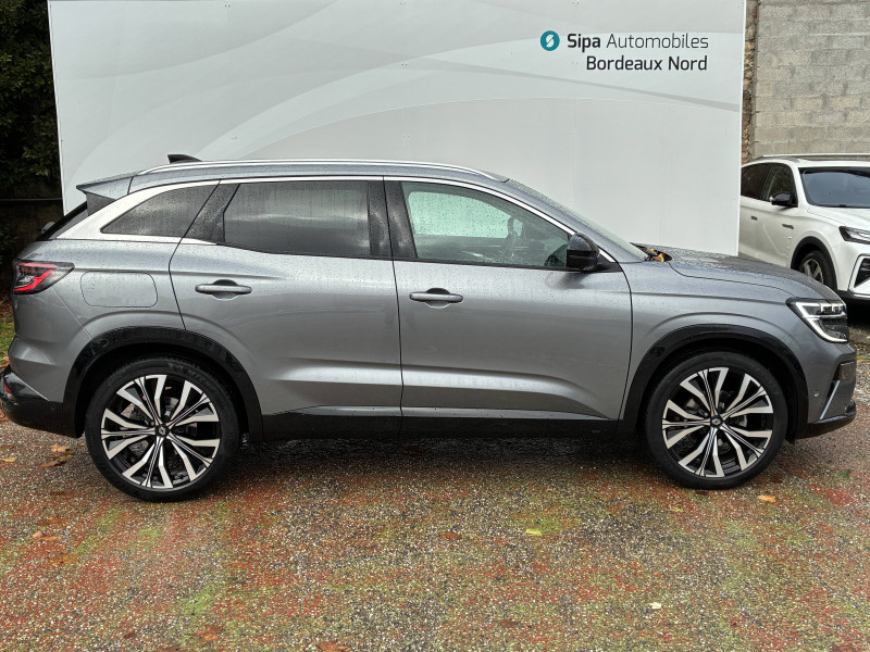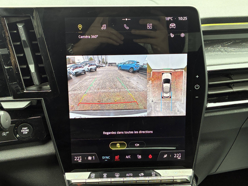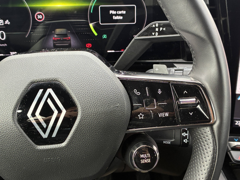 Avertisseur de sortie de stationnement en marche AR avec freinage d'urgence automatique / Commutation automatique des feux de route/croisement / Easy park assist et aides au parking AV, AR et latérale / Feux AR à LED avec effet 3D / Feux AV full LED Adaptative Vision / Insert de tableau de bord en bois véritable / Jantes alliage 20" Effie diamantées noir / Navigation Google Maps / Rétroviseurs extérieurs électriques à mémoire, dégivrants, rabattables automatiquement / 2 prises USB à l'AV et à l'AR / Airbags latéraux, milieu AV et rideaux / Alerte de distance de sécurité / Alerte franchissement de ligne et assistant maintien dans la voie / Avertisseur d'angle mort et prévention sortie de voie en cas de dépassement / Banquette AR coulissante 1/3-2/3 avec accoudoir central / Barres de toit longitudinales / Caméra 3D vision 360° / Carte Renault accès et démarrage mains libres / Ciel de toit gris anthracite / Classe energetique 1 / Clignotants AR dynamiques / Console centrale avec repose main coulissant / Evolution multimedia 1 / Faux plancher de coffre / Freinage actif d'urgence urbain (piéton + cycliste + intersection) / Hayon motorisé main libre / Kit de gonflage / Lumière d'ambiance personnalisable / Miroir de surveillance enfants / Multi-sense / Notice d'utilisation digitale embarqué dans le système multimédia du véhicule / Pré-équipement alarme / Rétroviseur intérieur électrochrome sans cadre / Seuil de portes / Siège conducteur électrique avec réglage lombaire et fonction massage / Sièges avec système ISOFIX / Sortie sécurisée des occupants / Système multimédia OpenR Link avec écran tactile 12" et services Google / Tableau de bord full numérique 12,3'' / Volant chauffant