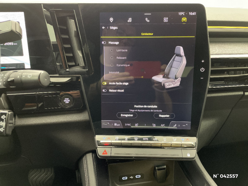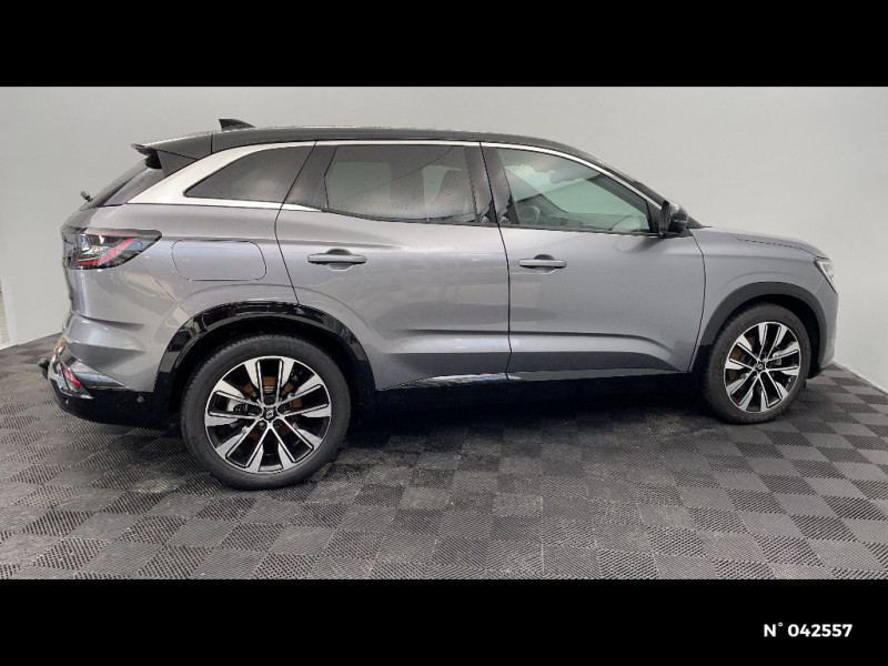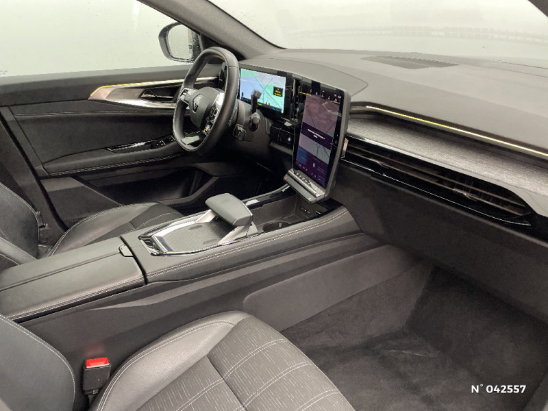 Airbags latéraux, milieu AV et rideaux / Alerte de distance de sécurité / Freinage actif d'urgence urbain (piéton + cycliste + intersection) / Kit de gonflage / Sièges avec système ISOFIX / Classe energetique B / Notice d'utilisation digitale embarqué dans le système multimédia du véhicule / Feux AV full LED Adaptative Vision / Banquette AR coulissante 1/3-2/3 avec accoudoir central / Console centrale avec repose main coulissant / Faux plancher de coffre / Peinture opaque / Aide au parking AV/AR et latéral / Commutation automatique des feux de route/croisement / Classe energetique 1 / Multi-sense / Carte Renault accès et démarrage mains libres / Ciel de toit gris anthracite / Jantes alliage 19" Komah diamantées noir / Sellerie mixte similicuir / tissu dégradé de gris / 2 prises USB à l'AV et à l'AR / Navigation Google Maps / Système multimédia OpenR Link avec écran tactile 12" et services Google / Tableau de bord full numérique 12,3'' / Alerte franchissement de ligne et assistant maintien dans la voie / Pré-équipement alarme / Miroir de surveillance enfants / Lumière d'ambiance personnalisable / Rétroviseur intérieur électrochrome sans cadre