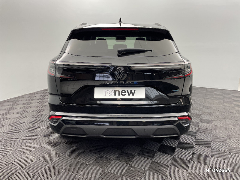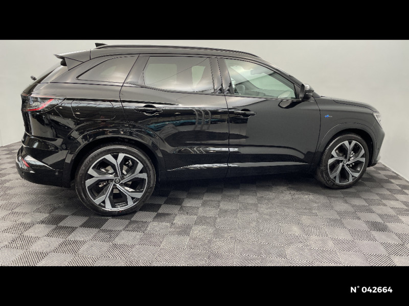 Lumière d'ambiance personnalisable / Pare-brise chauffant / Rétroviseur intérieur électrochrome sans cadre / Rétroviseurs extérieurs électriques à mémoire, dégivrants, rabattables automatiquement / Siège conducteur électrique avec réglage lombaire et fonction massage, siège passager électrique / Ciel de toit gris anthracite / Clignotants AR dynamiques / Feux AR à LED avec effet 3D / Jantes alliage 20" Daytona diamantées noir / Pack Design esprit Alpine extérieur / Pack Design esprit Alpine intérieur / Sellerie mixte tissu carbone / alcantara avec surpiqures bleu / Seuil de portes / Kit de gonflage / 2 prises USB à l'AV et à l'AR / Navigation Google Maps / Tableau de bord full numérique 12,3'' / Alerte franchissement de ligne et assistant maintien dans la voie / Avertisseur de sortie de stationnement en marche AR avec freinage d'urgence automatique / Pré-équipement alarme / Sièges avec système ISOFIX / Avertisseur d'angle mort et prévention sortie de voie en cas de dépassement / Frein de parking électrique avec fonction Auto-Hold / Caméra 3D vision 360° / Easy park assist et aides au parking avant, arrière et latérale / Feux AV full LED Adaptative Vision / Banquette AR coulissante 1/3-2/3 avec accoudoir central / Console centrale avec repose main coulissant / Faux plancher de coffre / Hayon motorisé main libre / Miroir de surveillance enfants / Sortie sécurisée des occupants / Active driver assist régulateur de vitesse adaptatif intelligent + centrage dans la voie / Eclairage d'accompagnement au sol avec projection logo / Système Multimédia openR link 12" : navigation, services Google, audio Arkamys Auditorium / Alerte détection de fatigue / Prédisposition éthylotest / Détection intelligente des limitations de vitesse et prévention survitesse / My Safety switch (raccourci vers configuration personnalisée des aides à la conduite) / Boîte de vitesse automatique 4 rapports / Barres de toit longitudinales / Commutation automatique des feux de route/croisement / Multi-sense / Carte Renault accès et démarrage mains libres / Volant chauffant / Airbags latéraux, milieu AV et rideaux / Alerte de distance de sécurité