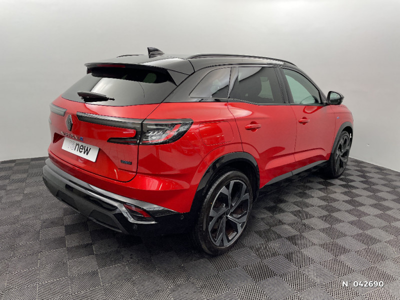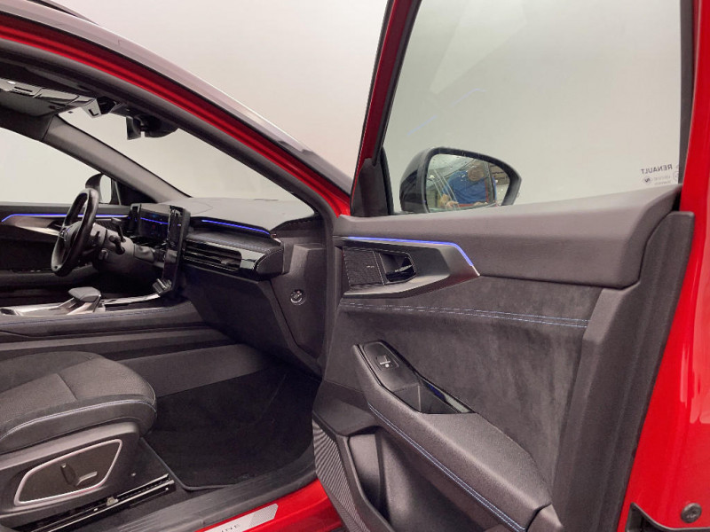 2 prises USB à l'AV et à l'AR / Navigation Google Maps / Système multimédia OpenR Link avec écran tactile 12" et services Google / Tableau de bord full numérique 12,3'' / Alerte franchissement de ligne et assistant maintien dans la voie / Avertisseur de sortie de stationnement en marche AR avec freinage d'urgence automatique / Pré-équipement alarme / Sortie sécurisée des occupants / Faux plancher de coffre / Hayon motorisé main libre / Miroir de surveillance enfants / Lumière d'ambiance personnalisable / Rétroviseur intérieur électrochrome sans cadre / Rétroviseurs extérieurs électriques à mémoire, dégivrants, rabattables automatiquement / Siège conducteur électrique avec réglage lombaire et fonction massage, siège passager électrique / Ciel de toit gris anthracite / Clignotants AR dynamiques / Classe energetique 1 / Active driver assist régulateur de vitesse adaptatif intelligent + centrage dans la voie / Conduite hybride prédictive / Eclairage d'accompagnement au sol avec projection logo / Système Multimédia openR link 12" : navigation, services Google, audio Arkamys Auditorium / Banquette AR coulissante 1/3-2/3 avec accoudoir central / Barres de toit longitudinales / Peinture opaque / Aide au parking AV/AR et latéral / Commutation automatique des feux de route/croisement / Multi-sense / Carte Renault accès et démarrage mains libres / Volant chauffant / Airbags latéraux, milieu AV et rideaux / Alerte de distance de sécurité / Freinage actif d'urgence urbain (piéton + cycliste + intersection) / Kit de gonflage / Sièges avec système ISOFIX / Avertisseur d'angle mort et prévention sortie de voie en cas de dépassement / Active driver assist / Notice d'utilisation digitale embarqué dans le système multimédia du véhicule / Caméra 3D vision 360° / Easy park assist et aides au parking avant, arrière et latérale / Feux AV full LED Adaptative Vision / Appuie-têtes AV grand confort / Feux AR à LED avec effet 3D / Jantes alliage 20" Daytona diamantées noir / Pack Design esprit Alpine extérieur / Console centrale avec repose main coulissant / Pack Design esprit Alpine intérieur / Sellerie mixte tissu carbone / alcantara avec surpiqures bleu / Seuil de portes / Volant cuir & Alcantara et surpiqures bleu/blanc/rouge