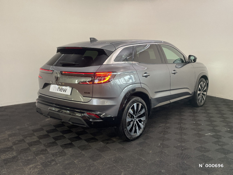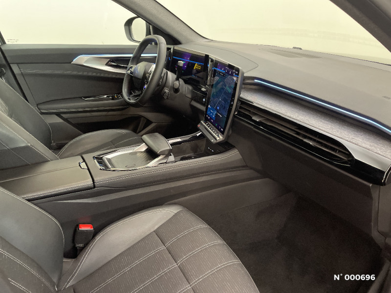 Lumière d'ambiance personnalisable / Rétroviseur intérieur électrochrome sans cadre / Ciel de toit gris anthracite / Jantes alliage 19" Komah diamantées noir / 2 prises USB à l'AV et à l'AR / Navigation Google Maps / Tableau de bord full numérique 12,3'' / Alerte franchissement de ligne et assistant maintien dans la voie / Pré-équipement alarme / Système Multimédia openR link 12" : navigation, services Google, audio Arkamys Auditorium / Sellerie mixte / tissu dégradé de gris / textile enduit grainé / Alerte détection de fatigue / Prédisposition éthylotest / Détection intelligente des limitations de vitesse et prévention survitesse / Airbags latéraux, milieu AV et rideaux / Alerte de distance de sécurité / Kit de gonflage / Sièges avec système ISOFIX / Frein de parking électrique avec fonction Auto-Hold / Feux AV full LED Adaptative Vision / Banquette AR coulissante 1/3-2/3 avec accoudoir central / Console centrale avec repose main coulissant / Faux plancher de coffre / Miroir de surveillance enfants / Carte Renault accès et démarrage mains libres / Aide au parking AV/AR et latéral / Commutation automatique des feux de route/croisement / Multi-sense / My Safety switch (raccourci vers configuration personnalisée des aides à la conduite) / Boîte de vitesse automatique 4 rapports