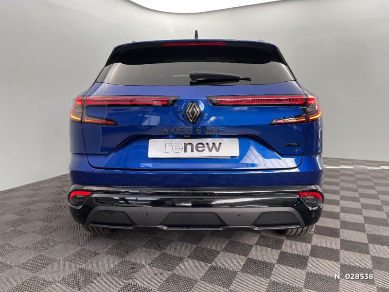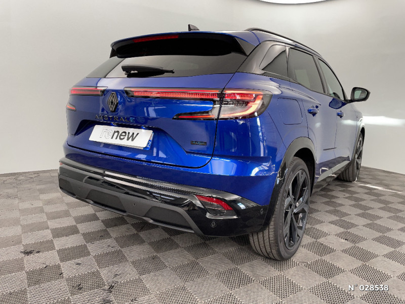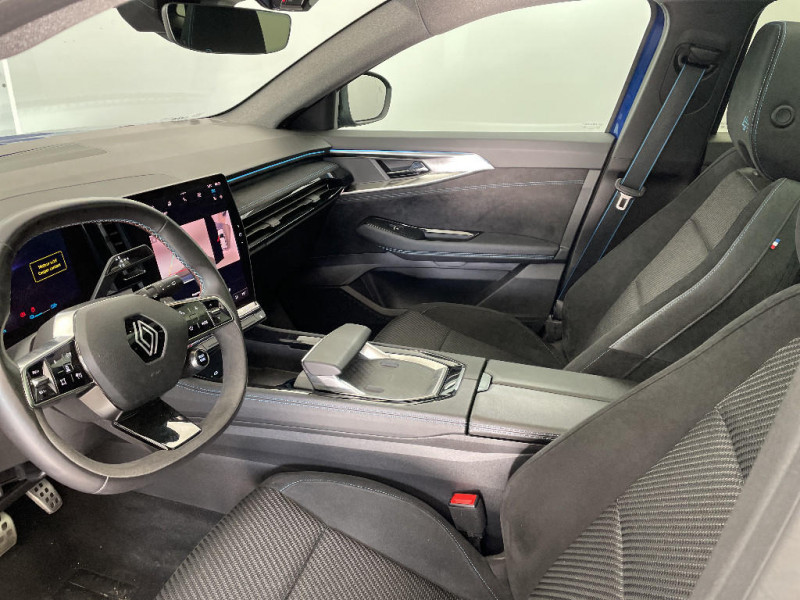 Pack Design esprit Alpine intérieur / Sellerie mixte tissu carbone / alcantara avec surpiqures bleu / Seuil de portes / Volant cuir & Alcantara et surpiqures bleu/blanc/rouge / 2 prises USB à l'AV et à l'AR / Navigation Google Maps / Tableau de bord full numérique 12,3'' / Console centrale avec repose main coulissant / Faux plancher de coffre / Miroir de surveillance enfants / Lumière d'ambiance personnalisable / Rétroviseur intérieur électrochrome sans cadre / Ciel de toit gris anthracite / Clignotants AR dynamiques / Feux AR à LED avec effet 3D / Jantes alliage 20" Daytona diamantées noir / Pack Design esprit Alpine extérieur / Alerte franchissement de ligne et assistant maintien dans la voie / Pré-équipement alarme / Système Multimédia openR link 12" : navigation, services Google, audio Arkamys Auditorium / Barres de toit longitudinales / Aide au parking AV/AR et latéral / Commutation automatique des feux de route/croisement / Multi-sense / Carte Renault accès et démarrage mains libres / Airbags latéraux, milieu AV et rideaux / Alerte de distance de sécurité / Freinage actif d'urgence urbain (piéton + cycliste + intersection) / Kit de gonflage / Sièges avec système ISOFIX / Frein de parking électrique avec fonction Auto-Hold / Feux AV full LED Adaptative Vision