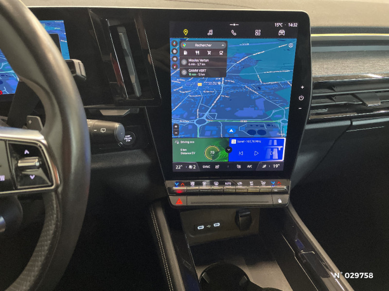 Console centrale avec repose main coulissant / Faux plancher de coffre / Miroir de surveillance enfants / Lumière d'ambiance personnalisable / Rétroviseur intérieur électrochrome sans cadre / Ciel de toit gris anthracite / Jantes alliage 19" Komah diamantées noir / Sellerie mixte similicuir / tissu dégradé de gris / 2 prises USB à l'AV et à l'AR / Navigation Google Maps / Système multimédia OpenR Link avec écran tactile 12" et services Google / Tableau de bord full numérique 12,3'' / Alerte franchissement de ligne et assistant maintien dans la voie / Pré-équipement alarme / Classe energetique 1 / Système Multimédia openR link 12" : navigation, services Google, audio Arkamys Auditorium / Carte Renault accès et démarrage mains libres / Airbags latéraux, milieu AV et rideaux / Alerte de distance de sécurité / Peinture opaque / Aide au parking AV/AR et latéral / Commutation automatique des feux de route/croisement / Multi-sense / Freinage actif d'urgence urbain (piéton + cycliste + intersection) / Kit de gonflage / Sièges avec système ISOFIX / Notice d'utilisation digitale embarqué dans le système multimédia du véhicule / Feux AV full LED Adaptative Vision / Banquette AR coulissante 1/3-2/3 avec accoudoir central