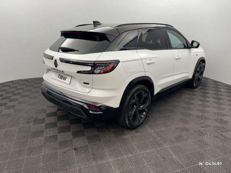 Classe energetique 1 / Appuie-têtes AV grand confort / Banquette AR coulissante 1/3-2/3 avec accoudoir central / Console centrale avec repose main coulissant / Faux plancher de coffre / Hayon motorisé main libre / Miroir de surveillance enfants / Lumière d'ambiance personnalisable / Rétroviseur intérieur électrochrome sans cadre / Rétroviseurs extérieurs électriques à mémoire, dégivrants, rabattables automatiquement / Siège conducteur électrique avec réglage lombaire et fonction massage, siège passager électrique / Ciel de toit gris anthracite / Clignotants AR dynamiques / Feux AR à LED avec effet 3D / Jantes alliage 20" Daytona diamantées noir / Pack Design esprit Alpine extérieur / Commutation automatique des feux de route/croisement / Multi-sense / Carte Renault accès et démarrage mains libres / Alerte de distance de sécurité / Freinage actif d'urgence urbain (piéton + cycliste + intersection) / Kit de gonflage / Sièges avec système ISOFIX / Avertisseur d'angle mort et prévention sortie de voie en cas de dépassement / Active driver assist / Classe energetique B / Notice d'utilisation digitale embarqué dans le système multimédia du véhicule / Caméra 3D vision 360° / Feux AV full LED Adaptative Vision / Volant chauffant / Airbags latéraux, milieu AV et rideaux / Peinture opaque / Aide au parking AV/AR et latéral / Barres de toit longitudinales / Pack Design esprit Alpine intérieur / Sellerie mixte tissu carbone / alcantara avec surpiqures bleu / Seuil de portes / Volant cuir & Alcantara et surpiqures bleu/blanc/rouge / 2 prises USB à l'AV et à l'AR / Navigation Google Maps / Système multimédia OpenR Link avec écran tactile 12" et services Google / Tableau de bord full numérique 12,3'' / Alerte franchissement de ligne et assistant maintien dans la voie / Avertisseur de sortie de stationnement en marche AR avec freinage d'urgence automatique / Pré-équipement alarme / Sortie sécurisée des occupants