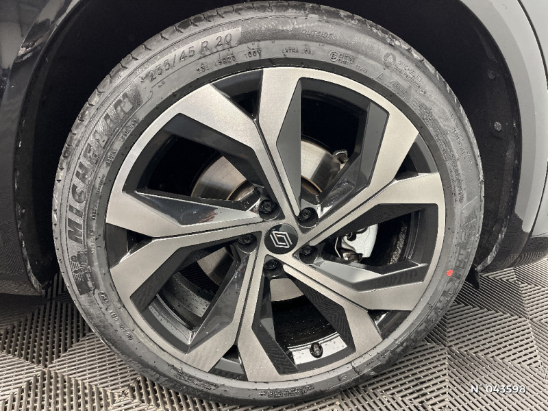 Pare-brise chauffant / Rétroviseur intérieur électrochrome sans cadre / Barres de toit longitudinales / Commutation automatique des feux de route/croisement / Multi-sense / Carte Renault accès et démarrage mains libres / Volant chauffant / Airbags latéraux, milieu AV et rideaux / Alerte de distance de sécurité / Rétroviseurs extérieurs électriques à mémoire, dégivrants, rabattables automatiquement / Siège conducteur électrique avec réglage lombaire et fonction massage, siège passager électrique / Ciel de toit gris anthracite / Clignotants AR dynamiques / Feux AR à LED avec effet 3D / Jantes alliage 20" Daytona diamantées noir / Pack Design esprit Alpine extérieur / Pack Design esprit Alpine intérieur / Sellerie mixte tissu carbone / alcantara avec surpiqures bleu / Seuil de portes / 2 prises USB à l'AV et à l'AR / Navigation Google Maps / Tableau de bord full numérique 12,3'' / Alerte franchissement de ligne et assistant maintien dans la voie / Avertisseur de sortie de stationnement en marche AR avec freinage d'urgence automatique / Pré-équipement alarme / Sortie sécurisée des occupants / Active driver assist régulateur de vitesse adaptatif intelligent + centrage dans la voie / Eclairage d'accompagnement au sol avec projection logo / Système Multimédia openR link 12" : navigation, services Google, audio Arkamys Auditorium / Alerte détection de fatigue / Prédisposition éthylotest / Détection intelligente des limitations de vitesse et prévention survitesse / My Safety switch (raccourci vers configuration personnalisée des aides à la conduite) / Boîte de vitesse automatique 4 rapports / Kit de gonflage / Sièges avec système ISOFIX / Avertisseur d'angle mort et prévention sortie de voie en cas de dépassement / Frein de parking électrique avec fonction Auto-Hold / Caméra 3D vision 360° / Easy park assist et aides au parking avant, arrière et latérale / Feux AV full LED Adaptative Vision / Banquette AR coulissante 1/3-2/3 avec accoudoir central / Console centrale avec repose main coulissant / Faux plancher de coffre / Hayon motorisé main libre / Miroir de surveillance enfants / Lumière d'ambiance personnalisable