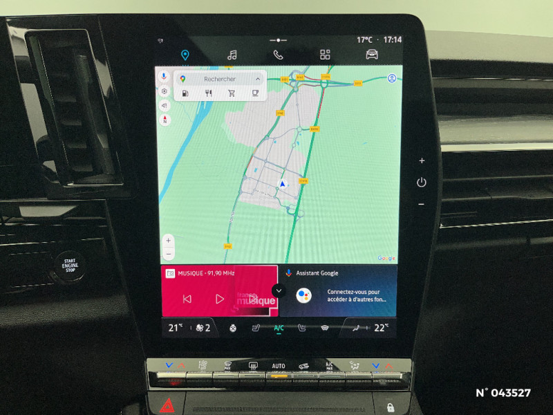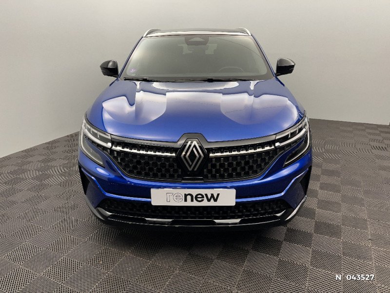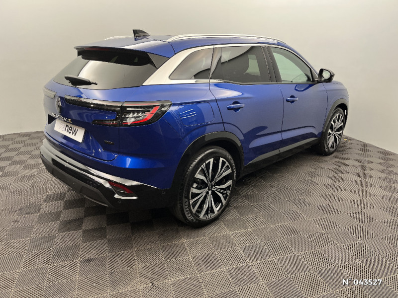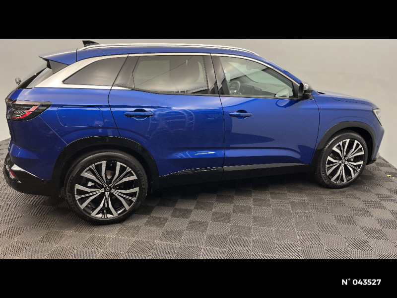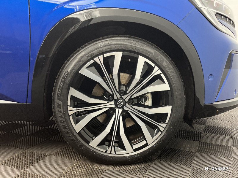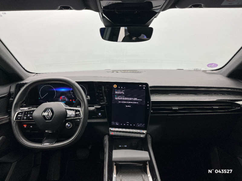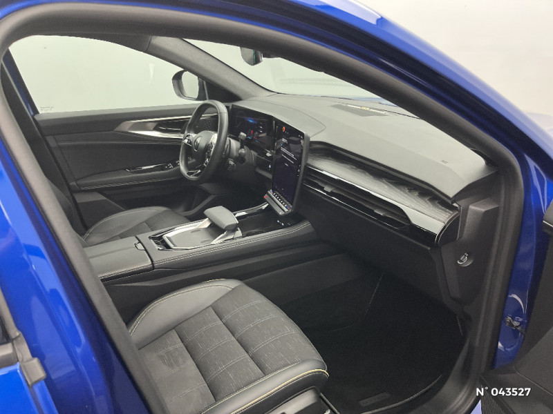 Airbags latéraux, milieu AV et rideaux / Alerte de distance de sécurité / Freinage actif d'urgence urbain (piéton + cycliste + intersection) / Kit de gonflage / Sièges avec système ISOFIX / Avertisseur d'angle mort et prévention sortie de voie en cas de dépassement / Frein de parking électrique avec fonction Auto-Hold / Caméra 3D vision 360° / Easy park assist et aides au parking avant, arrière et latérale / Feux AV full LED Adaptative Vision / Banquette AR coulissante 1/3-2/3 avec accoudoir central / Volant chauffant / Commutation automatique des feux de route/croisement / Multi-sense / Carte Renault accès et démarrage mains libres / Barres de toit longitudinales / Eclairage d'accompagnement au sol avec projection logo / Système Multimédia openR link 12" : navigation, services Google, audio Arkamys Auditorium / Sellerie mixte / tissu noir avec surpiqures or/ textile enduit grainé / Console centrale avec repose main coulissant / Faux plancher de coffre / Hayon motorisé main libre / Miroir de surveillance enfants / Lumière d'ambiance personnalisable / Pare-brise chauffant / Rétroviseur intérieur électrochrome sans cadre / Rétroviseurs extérieurs électriques à mémoire, dégivrants, rabattables automatiquement / Siège conducteur électrique avec réglage lombaire et fonction massage / Ciel de toit gris anthracite / Clignotants AR dynamiques / Feux AR à LED avec effet 3D / Insert de tableau de bord en bois véritable / Jantes alliage 20" Effie diamantées noir / Sellerie mixte similicuir / tissu carbone foncé avec surpiqures or / Seuil de portes / 2 prises USB à l'AV et à l'AR / Navigation Google Maps / Tableau de bord full numérique 12,3'' / Alerte franchissement de ligne et assistant maintien dans la voie / Avertisseur de sortie de stationnement en marche AR avec freinage d'urgence automatique / Pré-équipement alarme / Sortie sécurisée des occupants