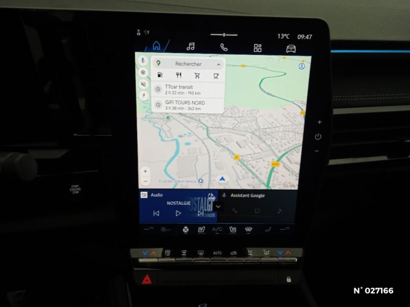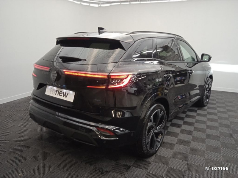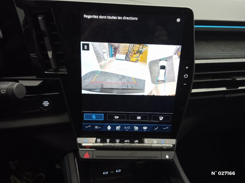 Commutation automatique des feux de route/croisement / Multi-sense / Carte Renault accès et démarrage mains libres / Volant chauffant / Airbags latéraux, milieu AV et rideaux / Alerte de distance de sécurité / Kit de gonflage / Sièges avec système ISOFIX / Avertisseur d'angle mort et prévention sortie de voie en cas de dépassement / Frein de parking électrique avec fonction Auto-Hold / Caméra 3D vision 360° / Easy park assist et aides au parking avant, arrière et latérale / Feux AV full LED Adaptative Vision / Banquette AR coulissante 1/3-2/3 avec accoudoir central / Console centrale avec repose main coulissant / Faux plancher de coffre / Hayon motorisé main libre / Miroir de surveillance enfants / Lumière d'ambiance personnalisable / Pare-brise chauffant / Rétroviseur intérieur électrochrome sans cadre / Rétroviseurs extérieurs électriques à mémoire, dégivrants, rabattables automatiquement / Siège conducteur électrique avec réglage lombaire et fonction massage, siège passager électrique / Barres de toit longitudinales / Jantes alliage 20" Daytona diamantées noir / Pack Design esprit Alpine extérieur / Pack Design esprit Alpine intérieur / Sellerie mixte tissu carbone / alcantara avec surpiqures bleu / Seuil de portes / 2 prises USB à l'AV et à l'AR / Navigation Google Maps / Tableau de bord full numérique 12,3'' / Alerte franchissement de ligne et assistant maintien dans la voie / Avertisseur de sortie de stationnement en marche AR avec freinage d'urgence automatique / Pré-équipement alarme / Sortie sécurisée des occupants / Active driver assist régulateur de vitesse adaptatif intelligent + centrage dans la voie / Eclairage d'accompagnement au sol avec projection logo / Système Multimédia openR link 12" : navigation, services Google, audio Arkamys Auditorium / Alerte détection de fatigue / Prédisposition éthylotest / Détection intelligente des limitations de vitesse et prévention survitesse / My Safety switch (raccourci vers configuration personnalisée des aides à la conduite) / Boîte de vitesse automatique 4 rapports / Ciel de toit gris anthracite / Clignotants AR dynamiques / Feux AR à LED avec effet 3D