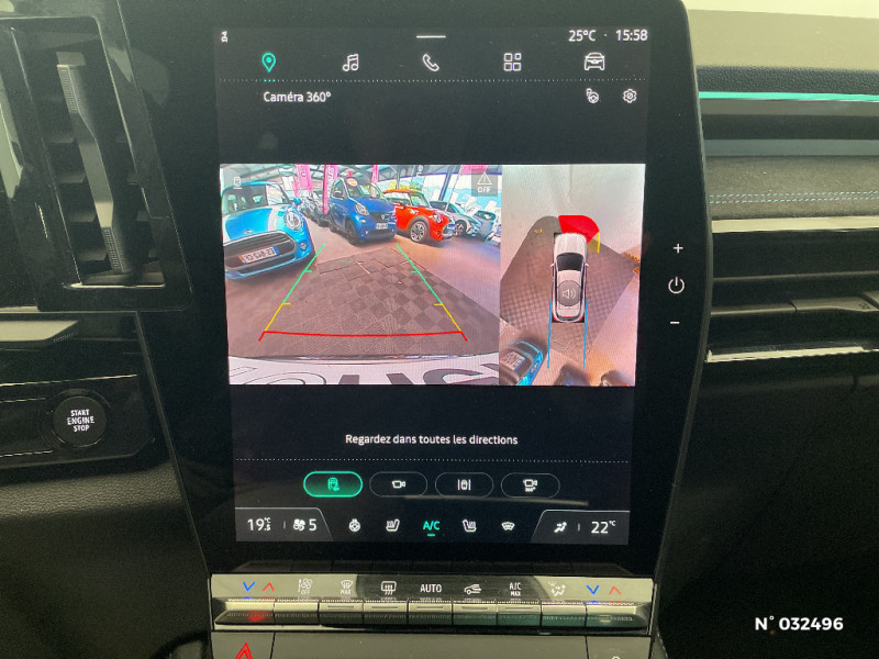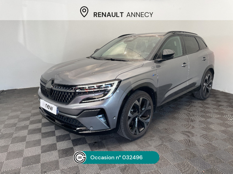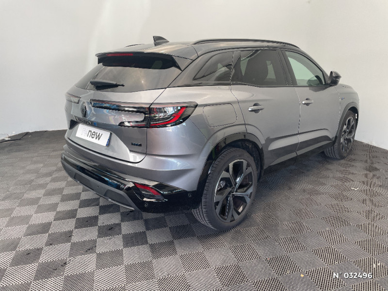 Eclairage d'accompagnement au sol avec projection logo / Système Multimédia openR link 12" : navigation, services Google, audio Arkamys Auditorium / Volant chauffant / Airbags latéraux, milieu AV et rideaux / Alerte de distance de sécurité / Freinage actif d'urgence urbain (piéton + cycliste + intersection) / Kit de gonflage / Sièges avec système ISOFIX / Avertisseur d'angle mort et prévention sortie de voie en cas de dépassement / Frein de parking électrique avec fonction Auto-Hold / Caméra 3D vision 360° / Easy park assist et aides au parking avant, arrière et latérale / Feux AV full LED Adaptative Vision / Appuie-têtes AV grand confort / Banquette AR coulissante 1/3-2/3 avec accoudoir central / Console centrale avec repose main coulissant / Faux plancher de coffre / Hayon motorisé main libre / Miroir de surveillance enfants / Lumière d'ambiance personnalisable / Barres de toit longitudinales / Commutation automatique des feux de route/croisement / Multi-sense / Carte Renault accès et démarrage mains libres / Pare-brise chauffant / Rétroviseur intérieur électrochrome sans cadre / Rétroviseurs extérieurs électriques à mémoire, dégivrants, rabattables automatiquement / Siège conducteur électrique avec réglage lombaire et fonction massage, siège passager électrique / Ciel de toit gris anthracite / Clignotants AR dynamiques / Feux AR à LED avec effet 3D / Jantes alliage 20" Daytona diamantées noir / Pack Design esprit Alpine extérieur / Pack Design esprit Alpine intérieur / Sellerie mixte tissu carbone / alcantara avec surpiqures bleu / Seuil de portes / Volant cuir & Alcantara et surpiqures bleu/blanc/rouge / 2 prises USB à l'AV et à l'AR / Navigation Google Maps / Tableau de bord full numérique 12,3'' / Alerte franchissement de ligne et assistant maintien dans la voie / Avertisseur de sortie de stationnement en marche AR avec freinage d'urgence automatique / Pré-équipement alarme / Sortie sécurisée des occupants / Active driver assist régulateur de vitesse adaptatif intelligent + centrage dans la voie / Conduite hybride prédictive