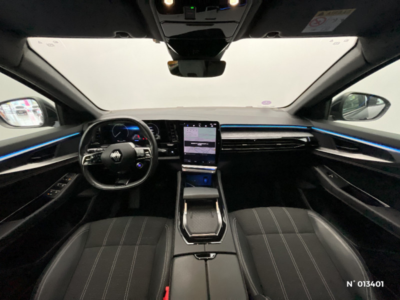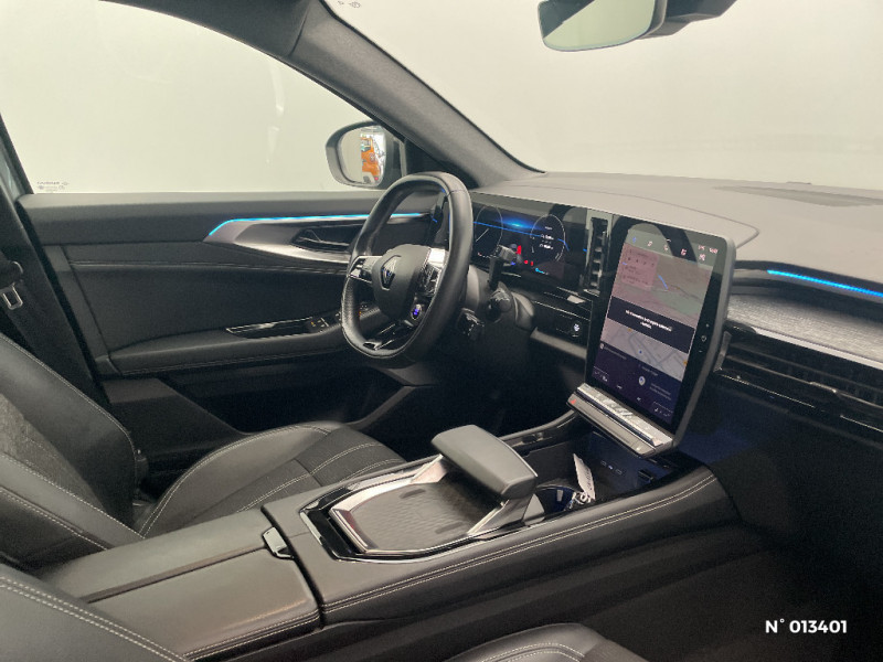 Lumière d'ambiance personnalisable / Rétroviseur intérieur électrochrome sans cadre / Airbags latéraux, milieu AV et rideaux / Alerte de distance de sécurité / Freinage actif d'urgence urbain (piéton + cycliste + intersection) / Kit de gonflage / Sièges avec système ISOFIX / Notice d'utilisation digitale embarqué dans le système multimédia du véhicule / Feux AV full LED Adaptative Vision / Alerte franchissement de ligne et assistant maintien dans la voie / Pré-équipement alarme / Classe energetique 1 / Système Multimédia openR link 12" : navigation, services Google, audio Arkamys Auditorium / Ciel de toit gris anthracite / Jantes alliage 19" Komah diamantées noir / Sellerie mixte similicuir / tissu dégradé de gris / 2 prises USB à l'AV et à l'AR / Navigation Google Maps / Système multimédia OpenR Link avec écran tactile 12" et services Google / Tableau de bord full numérique 12,3'' / Commutation automatique des feux de route/croisement / Multi-sense / Carte Renault accès et démarrage mains libres / Peinture opaque / Aide au parking AV/AR et latéral / Banquette AR coulissante 1/3-2/3 avec accoudoir central / Console centrale avec repose main coulissant / Faux plancher de coffre / Miroir de surveillance enfants