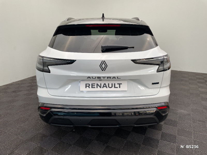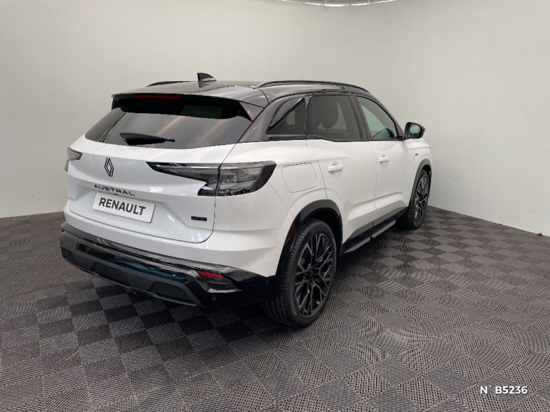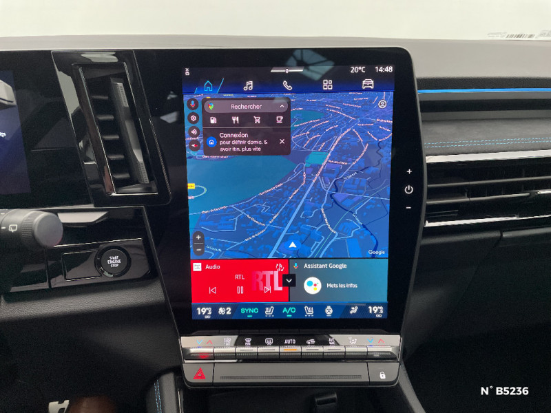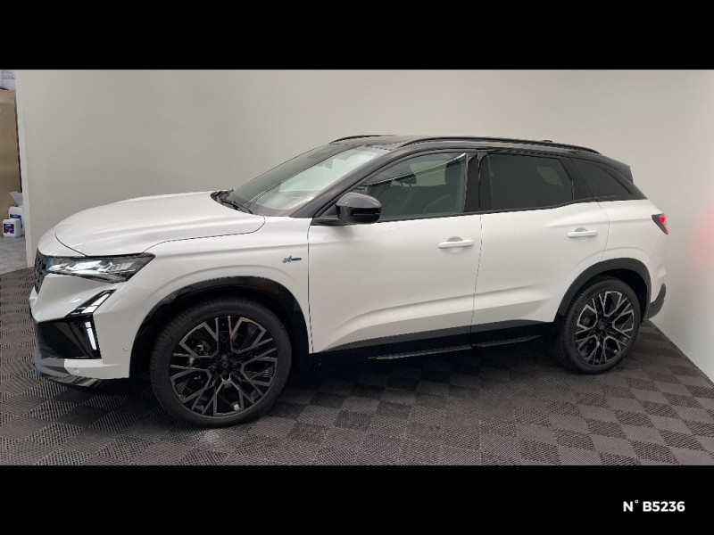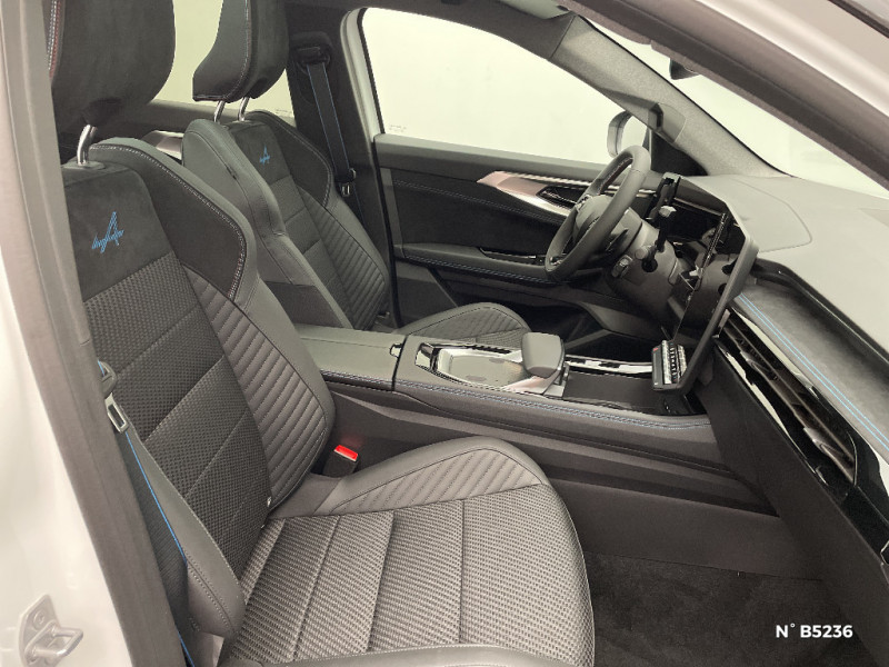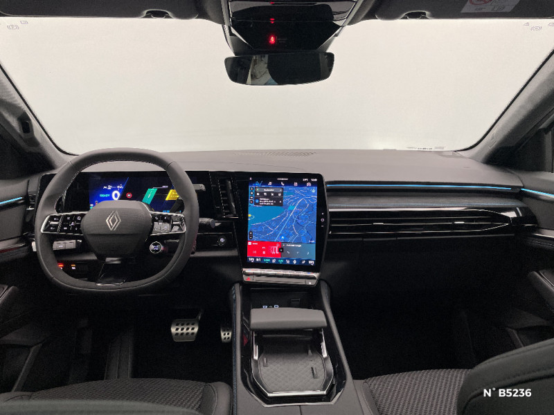 Rétroviseur intérieur électrochrome sans cadre / Sellerie mixte tissu carbone Alcantara® avec surpiqûres bleu, blanc, rouge / Seuil de portes / 2 prises USB à l'AV et à l'AR / Siège conducteur électrique avec réglage lombaire et fonction massage, siège passager électrique / Sièges avec système ISOFIX / Sortie sécurisée des occupants / Système de reconnaissance du conducteur / Système Multimédia openR link 12" : navigation, services Google, audio Arkamys Auditorium / Tableau de bord full numérique 12,3'' / Volant chauffant / Active driver assist régulateur de vitesse adaptatif intelligent + centrage dans la voie / Aide au parking AV/AR et latéral / Airbags latéraux, milieu AV et rideaux / Alerte de distance de sécurité / Alerte détection de fatigue / Alerte franchissement de ligne et assistant maintien dans la voie / Avertisseur d'angle mort et prévention sortie de voie en cas de dépassement / Avertisseur de sortie de stationnement en marche AR avec freinage d'urgence automatique / Boîte de vitesse hybride multimode 6 rapports / Carte Renault accès et démarrage mains libres / Ciel de toit gris anthracite / Clignotants AR dynamiques / Console centrale avec repose main coulissant / Détection intelligente des limitations de vitesse et prévention survitesse / Faux plancher de coffre / Feux AR à LED avec effet 3D / Feux LED adaptive vision (avec fonction antibrouillard intégrée) / Frein de parking électrique avec fonction Auto-Hold / Hayon motorisé main libre / Jantes alliage 20" Altitude diamanté noir avec vernis fumé gris / Kit de gonflage / Lumière d'ambiance personnalisable / Maintenance connectée, incluse pendant 8 ans / Mise à jour système (via firmware over the air FOTA), inclus pendant 5 ans / Multi-sense / Banquette AR coulissante 1/3-2/3 avec accoudoir central / Barres de toit longitudinales / My Safety switch (raccourci vers configuration personnalisée des aides à la conduite) / Navigation Google Maps / Notice d'utilisation digitale embarqué dans le système multimédia du véhicule / Pack connected driving, inclus pendant 5 ans / Pack contrôle à distance (via l'application My Renault), inclus pendant 5 ans / Pack Design esprit Alpine extérieur / Pack Design esprit Alpine intérieur / Prédisposition éthylotest / Pré-équipement alarme