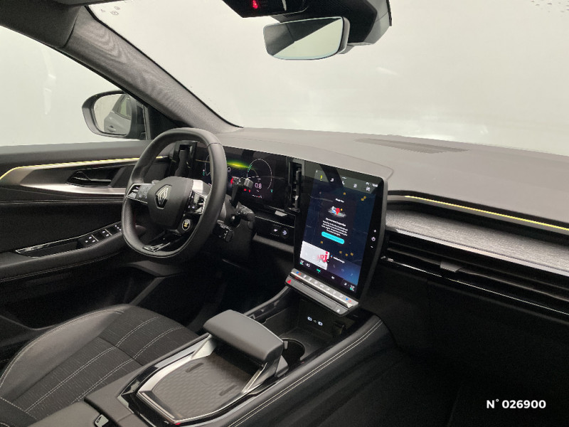 Sellerie mixte similicuir / tissu dégradé de gris / Jantes alliage 19" Komah diamantées noir / Navigation Google Maps / Système multimédia OpenR Link avec écran tactile 12" et services Google / Freinage actif d'urgence urbain (piéton + cycliste + intersection) / Kit de gonflage / Sièges avec système ISOFIX / Notice d'utilisation digitale embarqué dans le système multimédia du véhicule / Feux AV full LED Adaptative Vision / Peinture opaque / Aide au parking AV/AR et latéral / Commutation automatique des feux de route/croisement / Multi-sense / Carte Renault accès et démarrage mains libres / Airbags latéraux, milieu AV et rideaux / Alerte de distance de sécurité / Evolution multimedia 1 / Classe energetique 1 / Tableau de bord full numérique 12,3'' / Alerte franchissement de ligne et assistant maintien dans la voie / Pré-équipement alarme / Banquette AR coulissante 1/3-2/3 avec accoudoir central / Console centrale avec repose main coulissant / Faux plancher de coffre / Miroir de surveillance enfants / Lumière d'ambiance personnalisable / Rétroviseur intérieur électrochrome sans cadre / Ciel de toit gris anthracite / 2 prises USB à l'AV et à l'AR