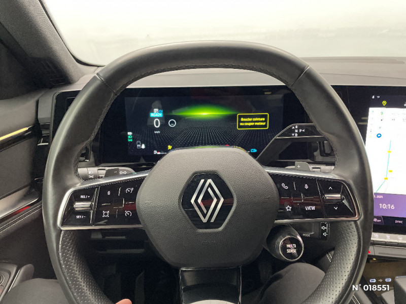 Ciel de toit gris anthracite / Jantes alliage 19" Komah diamantées noir / Sellerie mixte similicuir / tissu dégradé de gris / 2 prises USB à l'AV et à l'AR / Navigation Google Maps / Système multimédia OpenR Link avec écran tactile 12" et services Google / Tableau de bord full numérique 12,3'' / Alerte franchissement de ligne et assistant maintien dans la voie / Pré-équipement alarme / Classe energetique 1 / Système Multimédia openR link 12" : navigation, services Google, audio Arkamys Auditorium / Sellerie mixte / tissu dégradé de gris / textile enduit grainé / Carte Renault accès et démarrage mains libres / Airbags latéraux, milieu AV et rideaux / Alerte de distance de sécurité / Freinage actif d'urgence urbain (piéton + cycliste + intersection) / Kit de gonflage / Sièges avec système ISOFIX / Frein de parking électrique avec fonction Auto-Hold / Notice d'utilisation digitale embarqué dans le système multimédia du véhicule / Feux AV full LED Adaptative Vision / Banquette AR coulissante 1/3-2/3 avec accoudoir central / Console centrale avec repose main coulissant / Faux plancher de coffre / Miroir de surveillance enfants / Lumière d'ambiance personnalisable / Rétroviseur intérieur électrochrome sans cadre / Aide au parking AV/AR et latéral / Commutation automatique des feux de route/croisement / Multi-sense