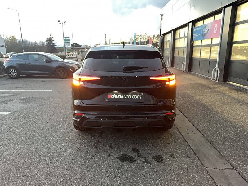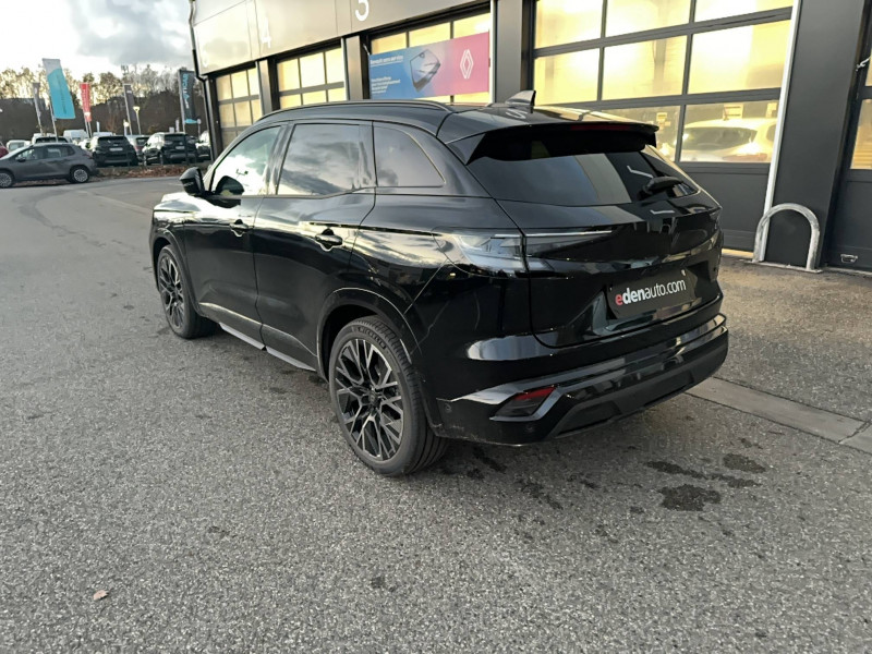2 prises USB à l'AV et à l'AR / Active driver assist régulateur de vitesse adaptatif intelligent + centrage dans la voie / Aide au parking AV/AR et latéral / Airbags latéraux, milieu AV et rideaux / Alerte de distance de sécurité / Alerte détection de fatigue / Alerte franchissement de ligne et assistant maintien dans la voie / Avertisseur d'angle mort et prévention sortie de voie en cas de dépassement / Avertisseur de sortie de stationnement en marche AR avec freinage d'urgence automatique / Banquette AR coulissante 1/3-2/3 avec accoudoir central / Barres de toit longitudinales / Boîte de vitesse hybride multimode 6 rapports / Carte Renault accès et démarrage mains libres / Ciel de toit gris anthracite / Clignotants AR dynamiques / Console centrale avec repose main coulissant / Détection intelligente des limitations de vitesse et prévention survitesse / Faux plancher de coffre / Feux AR à LED avec effet 3D / Feux LED adaptive vision (avec fonction antibrouillard intégrée) / Frein de parking électrique avec fonction Auto-Hold / Hayon motorisé main libre / Jantes alliage 20" Altitude diamanté noir avec vernis fumé gris / Kit de gonflage / Lumière d'ambiance personnalisable / Maintenance connectée, incluse pendant 8 ans / Mise à jour système (via firmware over the air FOTA), inclus pendant 5 ans / Multi-sense / My Safety switch (raccourci vers configuration personnalisée des aides à la conduite) / Navigation Google Maps / Notice d'utilisation digitale embarqué dans le système multimédia du véhicule / Pack connected driving, inclus pendant 5 ans / Pack contrôle à distance (via l'application My Renault), inclus pendant 5 ans / Pack Design esprit Alpine extérieur / Pack Design esprit Alpine intérieur / Prédisposition éthylotest / Pré-équipement alarme / Rétroviseur intérieur électrochrome sans cadre / Sellerie mixte tissu carbone Alcantara® avec surpiqûres bleu, blanc, rouge / Seuil de portes / Siège conducteur électrique avec réglage lombaire et fonction massage, siège passager électrique / Sortie sécurisée des occupants / Système de reconnaissance du conducteur / Système ISOFIX sur siège passager & 2 places rang 2 / Système Multimédia openR link 12" : navigation, services Google, audio Arkamys Auditorium / Tableau de bord full numérique 12,3'' / Volant chauffant