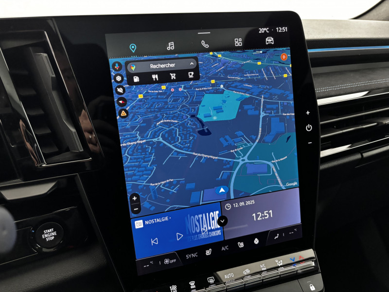 2 prises USB à l'AV et à l'AR / Active driver assist régulateur de vitesse adaptatif intelligent + centrage dans la voie / Airbags latéraux, milieu AV et rideaux / Alerte de distance de sécurité / Alerte franchissement de ligne et assistant maintien dans la voie / Appuie-têtes AV grand confort / Avertisseur d'angle mort et prévention sortie de voie en cas de dépassement / Avertisseur de sortie de stationnement en marche AR avec freinage d'urgence automatique / Banquette AR coulissante 1/3-2/3 avec accoudoir central / Barres de toit longitudinales / Caméra 3D vision 360° / Carte Renault accès et démarrage mains libres / Ciel de toit gris anthracite / Clignotants AR dynamiques / Commutation automatique des feux de route/croisement / Conduite hybride prédictive / Console centrale avec repose main coulissant / Easy park assist et aides au parking AV, AR et latérale / Eclairage d'accompagnement au sol avec projection logo / Faux plancher de coffre / Feux AR à LED avec effet 3D / Feux AV full LED Adaptative Vision / Freinage actif d'urgence urbain (piéton + cycliste + intersection) / Frein de parking électrique avec fonction Auto-Hold / Hayon motorisé main libre / Jantes alliage 20" Daytona diamantées noir / Kit de gonflage / Lumière d'ambiance personnalisable / Miroir de surveillance enfants / Multi-sense / Navigation Google Maps / Pack Design esprit Alpine extérieur / Pack Design esprit Alpine intérieur / Pare-brise chauffant / Pré-équipement alarme / Rétroviseur intérieur électrochrome sans cadre / Rétroviseurs extérieurs électriques à mémoire, dégivrants, rabattables automatiquement / Sellerie mixte tissu carbone / alcantara avec surpiqûres bleues / Seuil de portes / Siège conducteur électrique avec réglage lombaire et fonction massage, siège passager électrique / Sièges avec système ISOFIX / Sortie sécurisée des occupants / Système Multimédia openR link 12" : navigation, services Google, audio Arkamys Auditorium / Tableau de bord full numérique 12,3'' / Volant chauffant / Volant cuir & Alcantara et surpiqûres bleu/blanc/rouge / / 3008,kadjar,