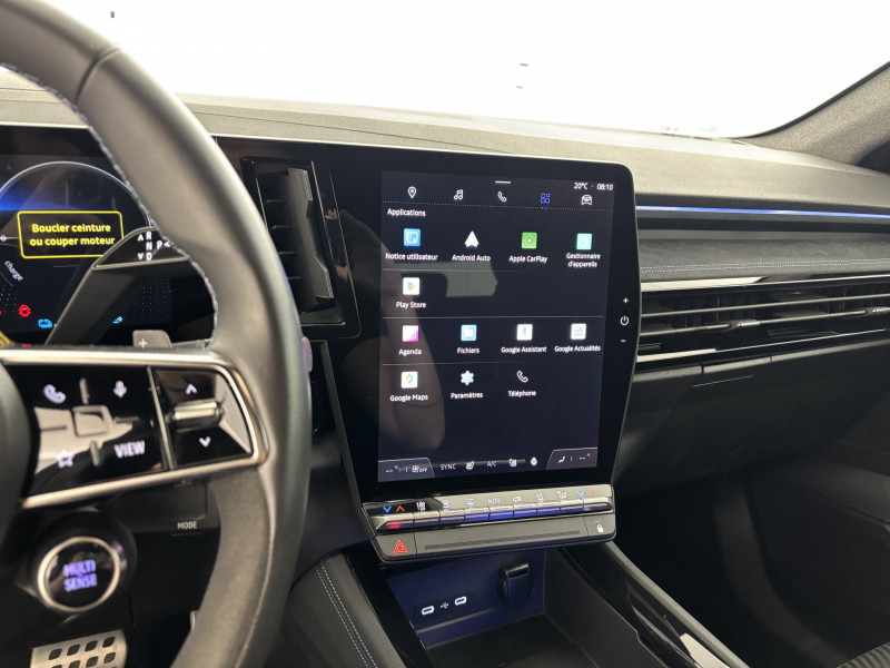 2 prises USB à l'AV et à l'AR / Active driver assist régulateur de vitesse adaptatif intelligent + centrage dans la voie / Airbags latéraux, milieu AV et rideaux / Alerte de distance de sécurité / Alerte franchissement de ligne et assistant maintien dans la voie / Appuie-têtes AV grand confort / Avertisseur d'angle mort et prévention sortie de voie en cas de dépassement / Avertisseur de sortie de stationnement en marche AR avec freinage d'urgence automatique / Banquette AR coulissante 1/3-2/3 avec accoudoir central / Barres de toit longitudinales / Caméra 3D vision 360° / Carte Renault accès et démarrage mains libres / Ciel de toit gris anthracite / Clignotants AR dynamiques / Commutation automatique des feux de route/croisement / Conduite hybride prédictive / Console centrale avec repose main coulissant / Easy park assist et aides au parking AV, AR et latérale / Eclairage d'accompagnement au sol avec projection logo / Faux plancher de coffre / Feux AR à LED avec effet 3D / Feux AV full LED Adaptative Vision / Freinage actif d'urgence urbain (piéton + cycliste + intersection) / Frein de parking électrique avec fonction Auto-Hold / Hayon motorisé main libre / Jantes alliage 20" Daytona diamantées noir / Kit de gonflage / Lumière d'ambiance personnalisable / Miroir de surveillance enfants / Multi-sense / Navigation Google Maps / Pack Design esprit Alpine extérieur / Pack Design esprit Alpine intérieur / Pare-brise chauffant / Pré-équipement alarme / Rétroviseur intérieur électrochrome sans cadre / Rétroviseurs extérieurs électriques à mémoire, dégivrants, rabattables automatiquement / Sellerie mixte tissu carbone / alcantara avec surpiqûres bleues / Seuil de portes / Siège conducteur électrique avec réglage lombaire et fonction massage, siège passager électrique / Sièges avec système ISOFIX / Sortie sécurisée des occupants / Système Multimédia openR link 12" : navigation, services Google, audio Arkamys Auditorium / Tableau de bord full numérique 12,3'' / Volant chauffant / Volant cuir & Alcantara et surpiqûres bleu/blanc/rouge / / 3008,kadjar,