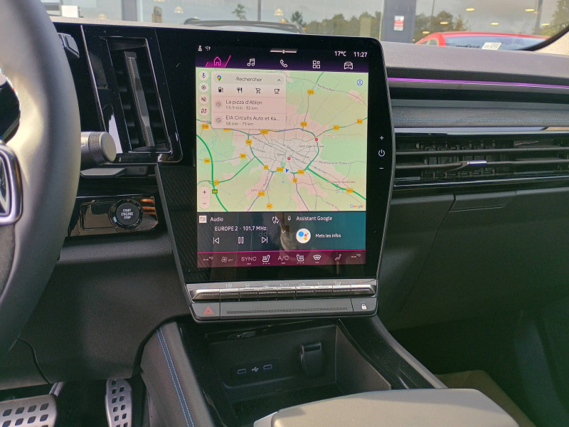 2 prises USB à l'AV et à l'AR / Aide au parking AV/AR et latéral / Airbags latéraux, milieu AV et rideaux / Alerte de distance de sécurité / Alerte détection de fatigue / Alerte franchissement de ligne et assistant maintien dans la voie / Barres de toit longitudinales / Boîte de vitesse automatique 4 rapports / Carte Renault accès et démarrage mains libres / Ciel de toit gris anthracite / Clignotants AR dynamiques / Commutation automatique des feux de route/croisement / Console centrale avec repose main coulissant / Détection intelligente des limitations de vitesse et prévention survitesse / Faux plancher de coffre / Feux AR à LED avec effet 3D / Feux AV full LED Adaptative Vision / Frein de parking électrique avec fonction Auto-Hold / Jantes alliage 20" Daytona diamantées noir / Kit de gonflage / Lumière d'ambiance personnalisable / Miroir de surveillance enfants / Multi-sense / My Safety switch (raccourci vers configuration personnalisée des aides à la conduite) / Navigation Google Maps / Pack Design esprit Alpine extérieur / Pack Design esprit Alpine intérieur / Prédisposition éthylotest / Pré-équipement alarme / Rétroviseur intérieur électrochrome sans cadre / Sellerie mixte tissu carbone / alcantara avec surpiqûres bleues / Seuil de portes / Sièges avec système ISOFIX / Système Multimédia openR link 12" : navigation, services Google, audio Arkamys Auditorium / Tableau de bord full numérique 12,3'' / / 3008,kadjar,