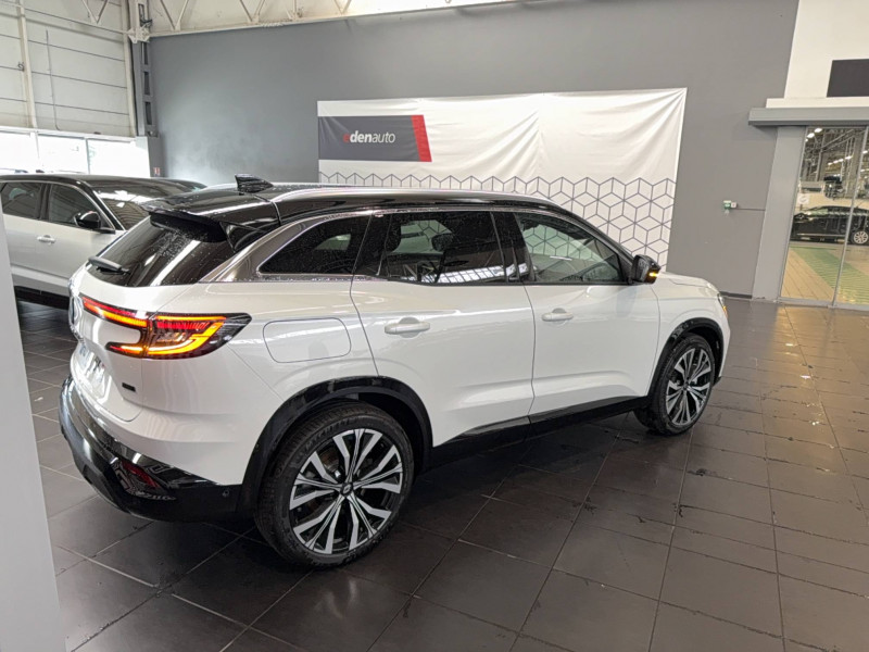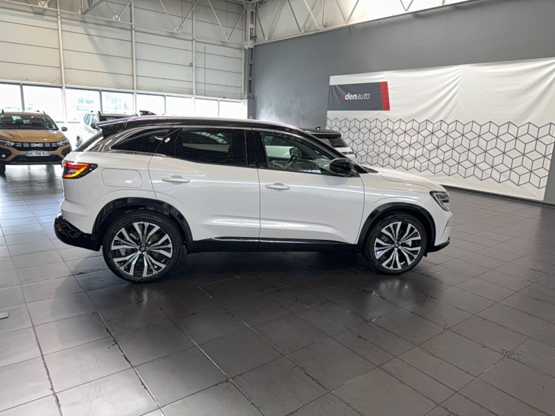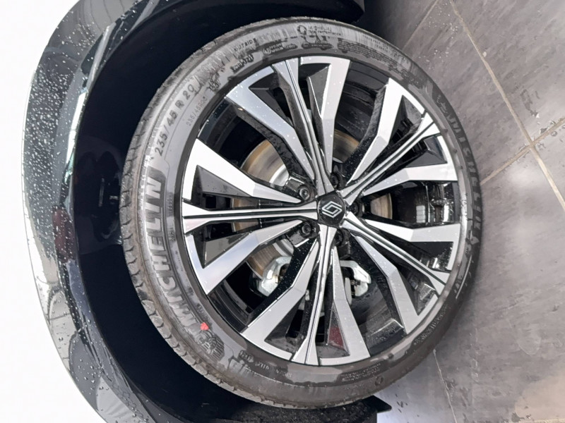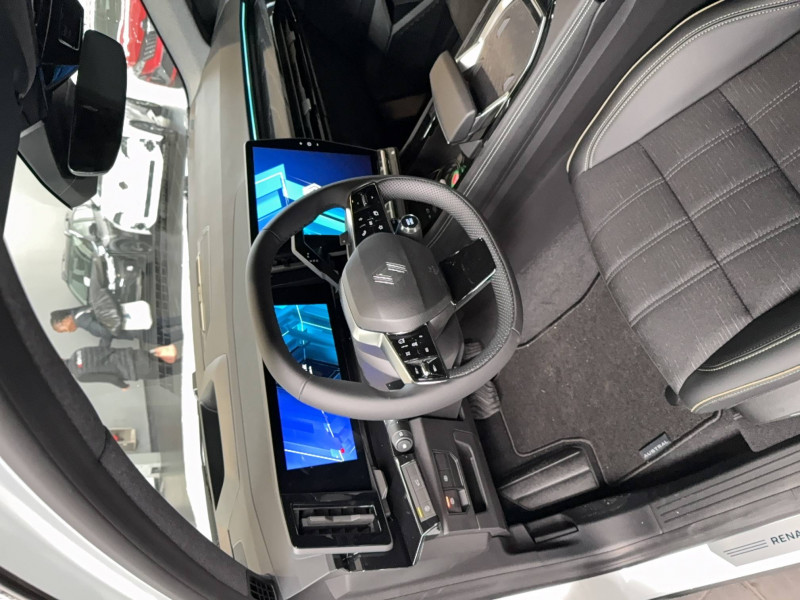 2 prises USB à l'AV et à l'AR / Airbags latéraux, milieu AV et rideaux / Alerte de distance de sécurité / Alerte détection de fatigue / Alerte franchissement de ligne et assistant maintien dans la voie / Avertisseur d'angle mort et prévention sortie de voie en cas de dépassement / Avertisseur de sortie de stationnement en marche AR avec freinage d'urgence automatique / Banquette AR coulissante 1/3-2/3 avec accoudoir central / Barres de toit longitudinales / Boîte de vitesse automatique 4 rapports / Caméra 3D vision 360° / Carte Renault accès et démarrage mains libres / Ciel de toit gris anthracite / Clignotants AR dynamiques / Commutation automatique des feux de route/croisement / Console centrale avec repose main coulissant / Détection intelligente des limitations de vitesse et prévention survitesse / Easy park assist et aides au parking AV, AR et latérale / Eclairage d'accompagnement au sol avec projection logo / Faux plancher de coffre / Feux AR à LED avec effet 3D / Feux AV full LED Adaptative Vision / Frein de parking électrique avec fonction Auto-Hold / Hayon motorisé main libre / Insert de tableau de bord en bois véritable / Jantes alliage 20" Effie diamantées noir / Kit de gonflage / Lumière d'ambiance personnalisable / Miroir de surveillance enfants / Multi-sense / My Safety switch (raccourci vers configuration personnalisée des aides à la conduite) / Navigation Google Maps / Pare-brise chauffant / Prédisposition éthylotest / Pré-équipement alarme / Rétroviseur intérieur électrochrome sans cadre / Rétroviseurs extérieurs électriques à mémoire, dégivrants, rabattables automatiquement / Sellerie mixte / tissu noir avec surpiqûres or/ textile enduit grainé / Seuil de portes / Siège conducteur électrique avec réglage lombaire et fonction massage / Sièges avec système ISOFIX / Sortie sécurisée des occupants / Système Multimédia openR link 12" : navigation, services Google, audio Arkamys Auditorium / Tableau de bord full numérique 12,3'' / Volant chauffant