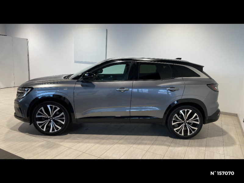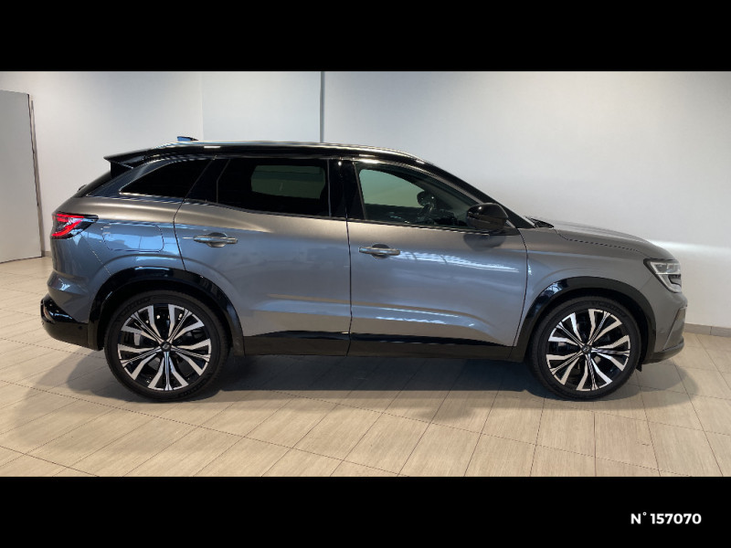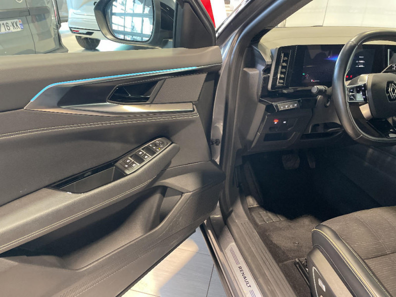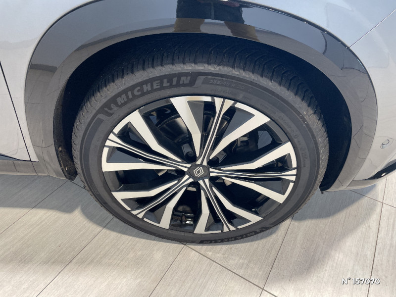 Classe energetique 1 / Eclairage d'accompagnement au sol avec projection logo / Système Multimédia openR link 12" : navigation, services Google, audio Arkamys Auditorium / Freinage actif d'urgence urbain (piéton + cycliste + intersection) / Kit de gonflage / Sièges avec système ISOFIX / Avertisseur d'angle mort et prévention sortie de voie en cas de dépassement / Notice d'utilisation digitale embarqué dans le système multimédia du véhicule / Caméra 3D vision 360° / Easy park assist et aides au parking avant, arrière et latérale / Feux AV full LED Adaptative Vision / Banquette AR coulissante 1/3-2/3 avec accoudoir central / Console centrale avec repose main coulissant / Faux plancher de coffre / Hayon motorisé main libre / Miroir de surveillance enfants / Lumière d'ambiance personnalisable / Rétroviseur intérieur électrochrome sans cadre / Rétroviseurs extérieurs électriques à mémoire, dégivrants, rabattables automatiquement / Barres de toit longitudinales / Peinture opaque / Commutation automatique des feux de route/croisement / Multi-sense / Carte Renault accès et démarrage mains libres / Volant chauffant / Airbags latéraux, milieu AV et rideaux / Alerte de distance de sécurité / Siège conducteur électrique avec réglage lombaire et fonction massage / Ciel de toit gris anthracite / Clignotants AR dynamiques / Feux AR à LED avec effet 3D / Insert de tableau de bord en bois véritable / Jantes alliage 20" Effie diamantées noir / Sellerie mixte similicuir / tissu carbone foncé avec surpiqures or / Seuil de portes / 2 prises USB à l'AV et à l'AR / Navigation Google Maps / Système multimédia OpenR Link avec écran tactile 12" et services Google / Tableau de bord full numérique 12,3'' / Alerte franchissement de ligne et assistant maintien dans la voie / Avertisseur de sortie de stationnement en marche AR avec freinage d'urgence automatique / Pré-équipement alarme / Sortie sécurisée des occupants