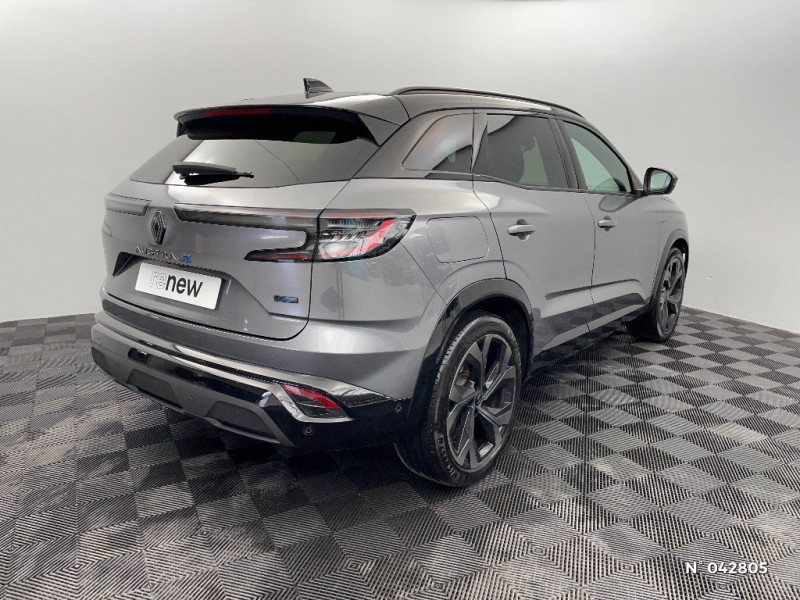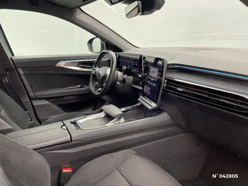 Frein de parking électrique avec fonction Auto-Hold / Faux plancher de coffre / Hayon motorisé main libre / Miroir de surveillance enfants / Lumière d'ambiance personnalisable / Pare-brise chauffant / Rétroviseur intérieur électrochrome sans cadre / Rétroviseurs extérieurs électriques à mémoire, dégivrants, rabattables automatiquement / Siège conducteur électrique avec réglage lombaire et fonction massage, siège passager électrique / Notice d'utilisation digitale embarqué dans le système multimédia du véhicule / Caméra 3D vision 360° / Easy park assist et aides au parking avant, arrière et latérale / Feux AV full LED Adaptative Vision / Appuie-têtes AV grand confort / Banquette AR coulissante 1/3-2/3 avec accoudoir central / Console centrale avec repose main coulissant / Ciel de toit gris anthracite / Clignotants AR dynamiques / Feux AR à LED avec effet 3D / Jantes alliage 20" Daytona diamantées noir / Pack Design esprit Alpine extérieur / Pack Design esprit Alpine intérieur / Sellerie mixte tissu carbone / alcantara avec surpiqures bleu / Seuil de portes / Volant cuir & Alcantara et surpiqures bleu/blanc/rouge / 2 prises USB à l'AV et à l'AR / Navigation Google Maps / Système multimédia OpenR Link avec écran tactile 12" et services Google / Tableau de bord full numérique 12,3'' / Alerte franchissement de ligne et assistant maintien dans la voie / Avertisseur de sortie de stationnement en marche AR avec freinage d'urgence automatique / Classe energetique 1 / Active driver assist régulateur de vitesse adaptatif intelligent + centrage dans la voie / Conduite hybride prédictive / Eclairage d'accompagnement au sol avec projection logo / Système Multimédia openR link 12" : navigation, services Google, audio Arkamys Auditorium / Barres de toit longitudinales / Commutation automatique des feux de route/croisement / Multi-sense / Carte Renault accès et démarrage mains libres / Pré-équipement alarme / Sortie sécurisée des occupants / Volant chauffant / Airbags latéraux, milieu AV et rideaux / Alerte de distance de sécurité / Freinage actif d'urgence urbain (piéton + cycliste + intersection) / Kit de gonflage / Sièges avec système ISOFIX / Avertisseur d'angle mort et prévention sortie de voie en cas de dépassement / Active driver assist