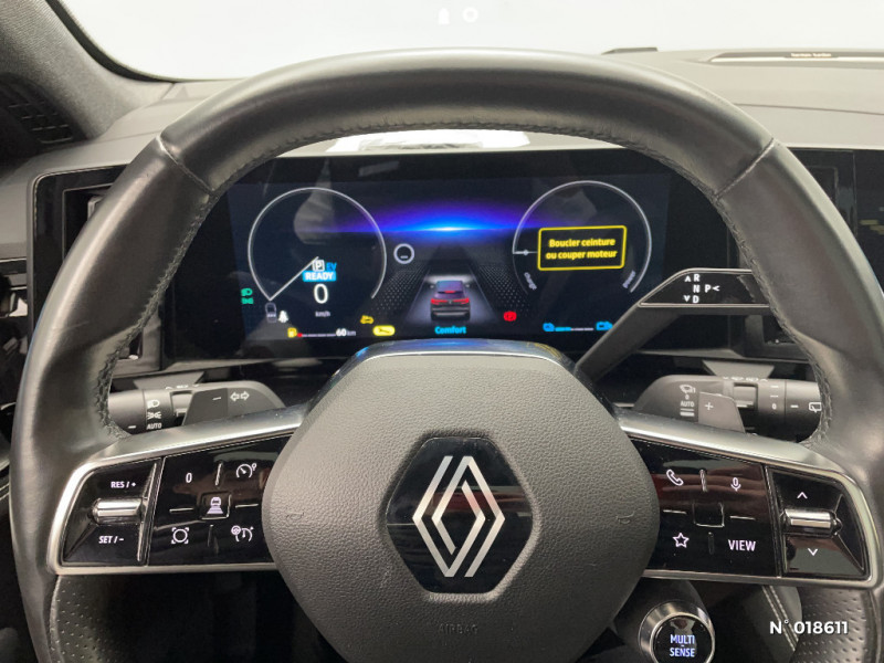 Alerte franchissement de ligne et assistant maintien dans la voie / Avertisseur de sortie de stationnement en marche AR avec freinage d'urgence automatique / Pré-équipement alarme / Sortie sécurisée des occupants / Classe energetique 1 / Barres de toit longitudinales / Peinture opaque / Aide au parking AV/AR et latéral / Console centrale avec repose main coulissant / Faux plancher de coffre / Hayon motorisé main libre / Miroir de surveillance enfants / Lumière d'ambiance personnalisable / Rétroviseur intérieur électrochrome sans cadre / Rétroviseurs extérieurs électriques à mémoire, dégivrants, rabattables automatiquement / Siège conducteur électrique avec réglage lombaire et fonction massage / Ciel de toit gris anthracite / Clignotants AR dynamiques / Feux AR à LED avec effet 3D / Insert de tableau de bord en bois véritable / Jantes alliage 20" Effie diamantées noir / Sellerie mixte similicuir / tissu carbone foncé avec surpiqures or / Seuil de portes / 2 prises USB à l'AV et à l'AR / Navigation Google Maps / Système multimédia OpenR Link avec écran tactile 12" et services Google / Tableau de bord full numérique 12,3'' / Commutation automatique des feux de route/croisement / Multi-sense / Carte Renault accès et démarrage mains libres / Volant chauffant / Airbags latéraux, milieu AV et rideaux / Alerte de distance de sécurité / Freinage actif d'urgence urbain (piéton + cycliste + intersection) / Kit de gonflage / Sièges avec système ISOFIX / Avertisseur d'angle mort et prévention sortie de voie en cas de dépassement / Classe energetique B / Notice d'utilisation digitale embarqué dans le système multimédia du véhicule / Caméra 3D vision 360° / Feux AV full LED Adaptative Vision / Banquette AR coulissante 1/3-2/3 avec accoudoir central