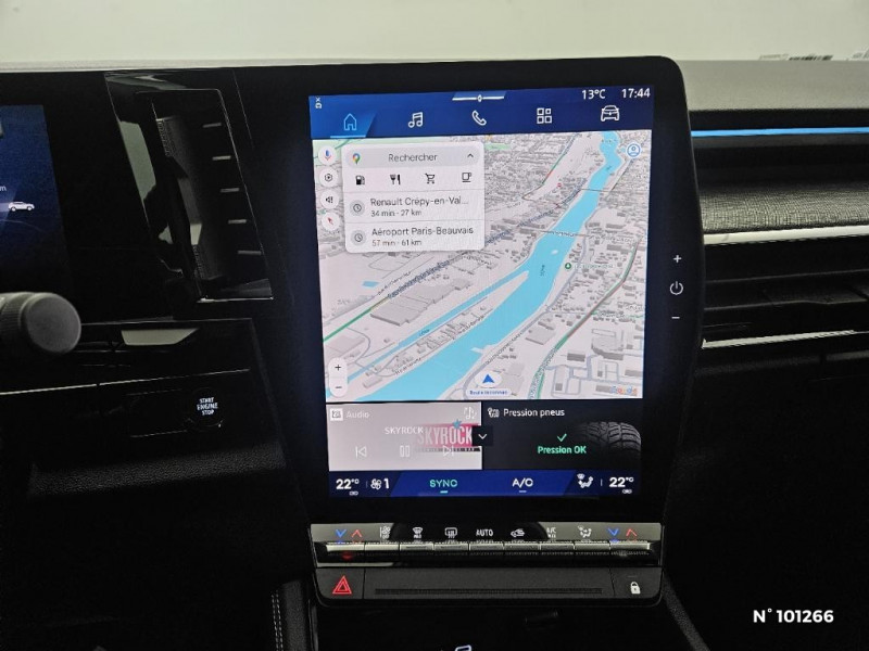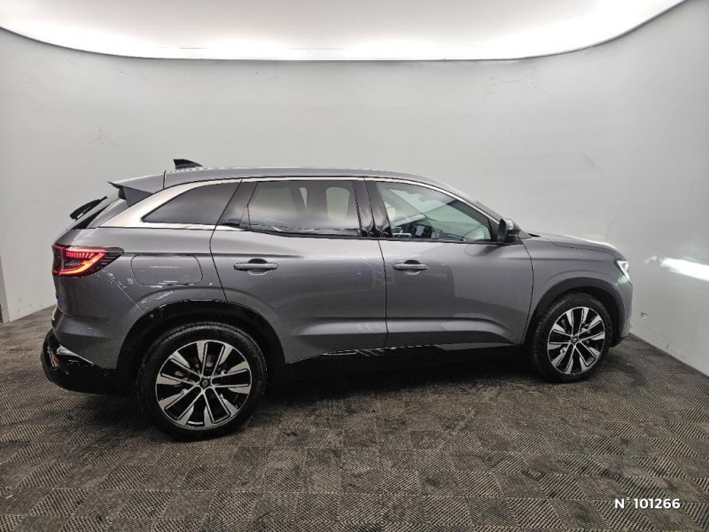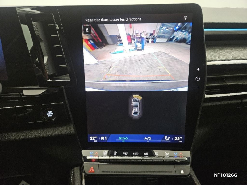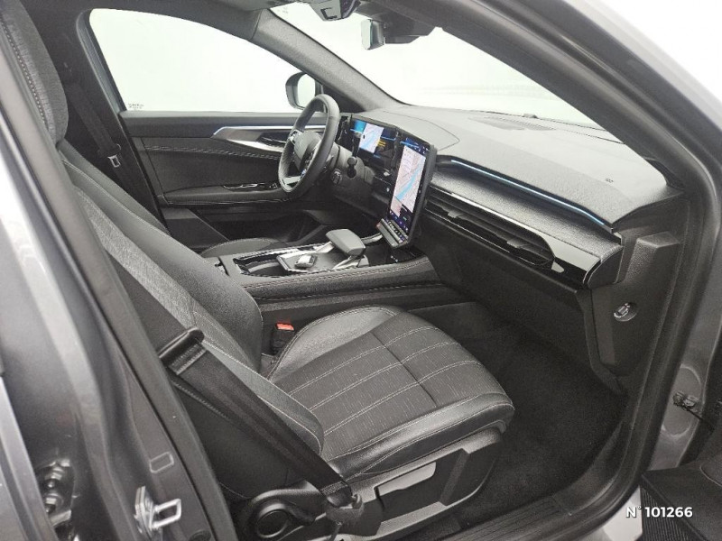 Sellerie mixte / tissu dégradé de gris / textile enduit grainé / Alerte détection de fatigue / Prédisposition éthylotest / Détection intelligente des limitations de vitesse et prévention survitesse / My Safety switch (raccourci vers configuration personnalisée des aides à la conduite) / Boîte de vitesse automatique 4 rapports / Alerte franchissement de ligne et assistant maintien dans la voie / Pré-équipement alarme / Système Multimédia openR link 12" : navigation, services Google, audio Arkamys Auditorium / Kit de gonflage / Sièges avec système ISOFIX / Frein de parking électrique avec fonction Auto-Hold / Feux AV full LED Adaptative Vision / Banquette AR coulissante 1/3-2/3 avec accoudoir central / Console centrale avec repose main coulissant / Faux plancher de coffre / Miroir de surveillance enfants / Lumière d'ambiance personnalisable / Rétroviseur intérieur électrochrome sans cadre / Ciel de toit gris anthracite / Jantes alliage 19" Komah diamantées noir / 2 prises USB à l'AV et à l'AR / Navigation Google Maps / Tableau de bord full numérique 12,3'' / Aide au parking AV/AR et latéral / Commutation automatique des feux de route/croisement / Multi-sense / Carte Renault accès et démarrage mains libres / Airbags latéraux, milieu AV et rideaux / Alerte de distance de sécurité