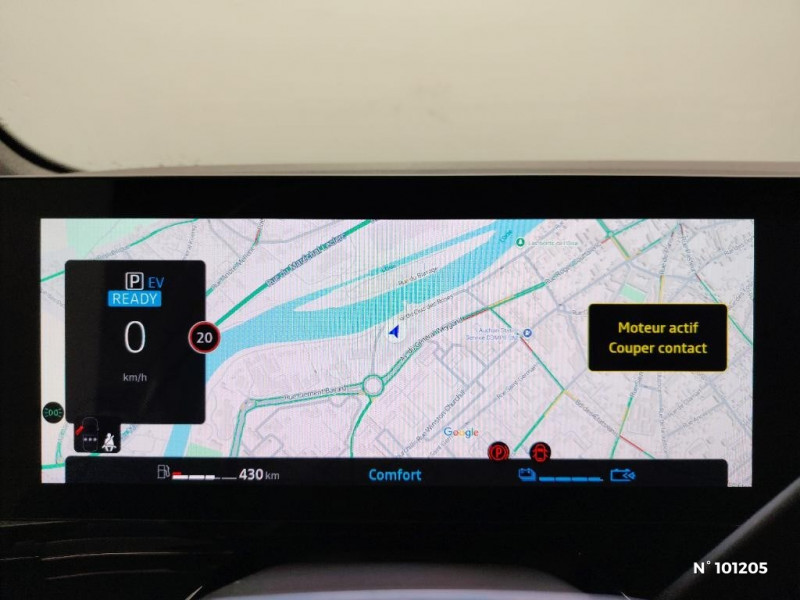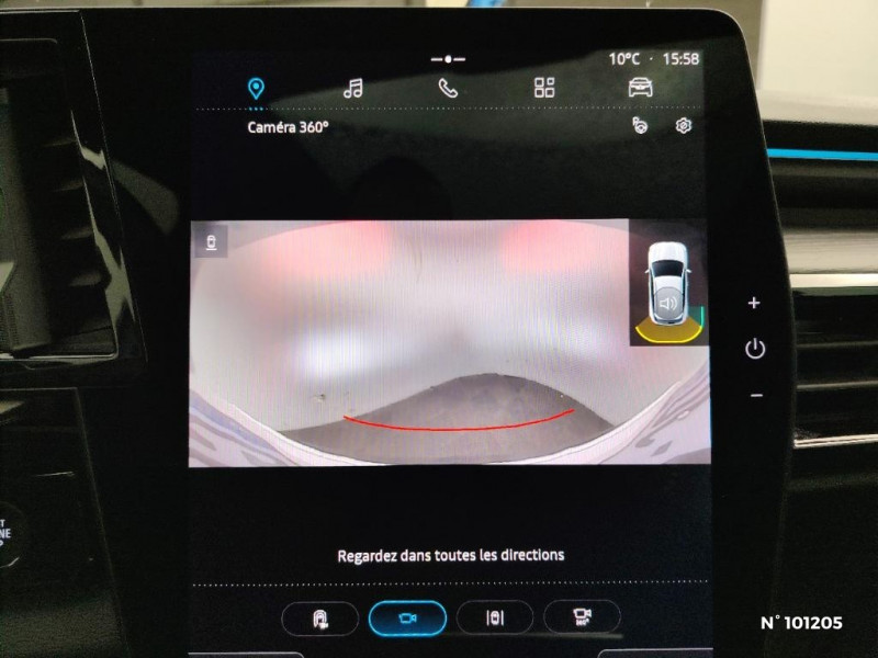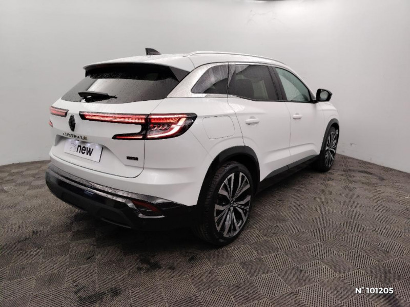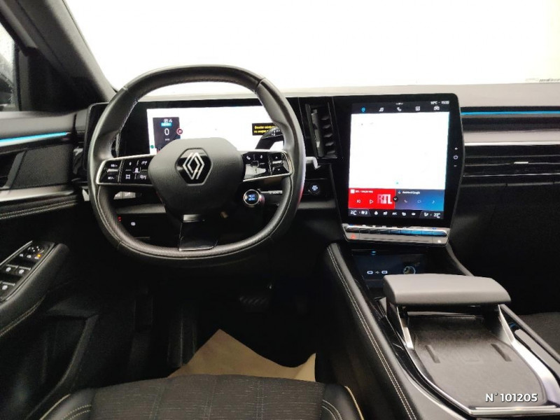 Sellerie mixte / tissu noir avec surpiqures or/ textile enduit grainé / Ciel de toit gris anthracite / Clignotants AR dynamiques / Multi-sense / Carte Renault accès et démarrage mains libres / Volant chauffant / Sellerie mixte similicuir / tissu carbone foncé avec surpiqures or / Seuil de portes / 2 prises USB à l'AV et à l'AR / Navigation Google Maps / Tableau de bord full numérique 12,3'' / Alerte franchissement de ligne et assistant maintien dans la voie / Avertisseur de sortie de stationnement en marche AR avec freinage d'urgence automatique / Pré-équipement alarme / Sortie sécurisée des occupants / Feux AR à LED avec effet 3D / Insert de tableau de bord en bois véritable / Jantes alliage 20" Effie diamantées noir / Eclairage d'accompagnement au sol avec projection logo / Système Multimédia openR link 12" : navigation, services Google, audio Arkamys Auditorium / Barres de toit longitudinales / Commutation automatique des feux de route/croisement / Airbags latéraux, milieu AV et rideaux / Alerte de distance de sécurité / Freinage actif d'urgence urbain (piéton + cycliste + intersection) / Kit de gonflage / Sièges avec système ISOFIX / Avertisseur d'angle mort et prévention sortie de voie en cas de dépassement / Frein de parking électrique avec fonction Auto-Hold / Caméra 3D vision 360° / Easy park assist et aides au parking avant, arrière et latérale / Feux AV full LED Adaptative Vision / Banquette AR coulissante 1/3-2/3 avec accoudoir central / Console centrale avec repose main coulissant / Faux plancher de coffre / Hayon motorisé main libre / Miroir de surveillance enfants / Lumière d'ambiance personnalisable / Pare-brise chauffant / Rétroviseur intérieur électrochrome sans cadre / Rétroviseurs extérieurs électriques à mémoire, dégivrants, rabattables automatiquement / Siège conducteur électrique avec réglage lombaire et fonction massage