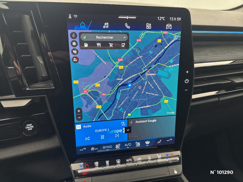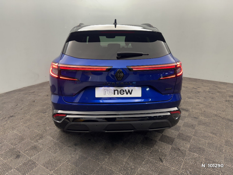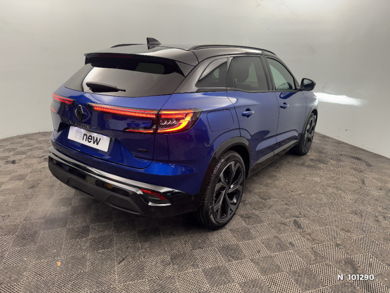 Console centrale avec repose main coulissant / Faux plancher de coffre / Miroir de surveillance enfants / Lumière d'ambiance personnalisable / Rétroviseur intérieur électrochrome sans cadre / Ciel de toit gris anthracite / Clignotants AR dynamiques / Feux AR à LED avec effet 3D / Jantes alliage 20" Daytona diamantées noir / Barres de toit longitudinales / Aide au parking AV/AR et latéral / Commutation automatique des feux de route/croisement / Multi-sense / Carte Renault accès et démarrage mains libres / Airbags latéraux, milieu AV et rideaux / Alerte de distance de sécurité / Kit de gonflage / Sièges avec système ISOFIX / Frein de parking électrique avec fonction Auto-Hold / Feux AV full LED Adaptative Vision / Pack Design esprit Alpine extérieur / Pack Design esprit Alpine intérieur / Sellerie mixte tissu carbone / alcantara avec surpiqures bleu / Seuil de portes / 2 prises USB à l'AV et à l'AR / Navigation Google Maps / Tableau de bord full numérique 12,3'' / Alerte franchissement de ligne et assistant maintien dans la voie / Pré-équipement alarme / Système Multimédia openR link 12" : navigation, services Google, audio Arkamys Auditorium / Alerte détection de fatigue / Prédisposition éthylotest / Détection intelligente des limitations de vitesse et prévention survitesse / My Safety switch (raccourci vers configuration personnalisée des aides à la conduite) / Boîte de vitesse automatique 4 rapports