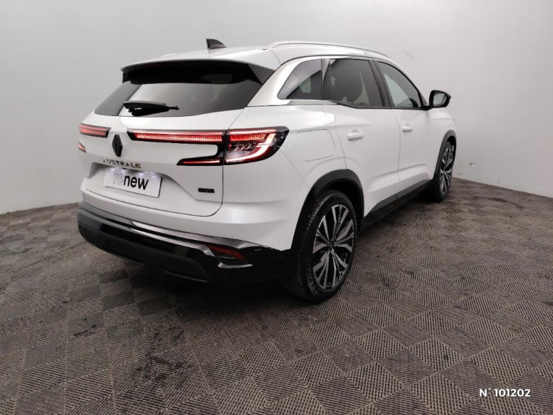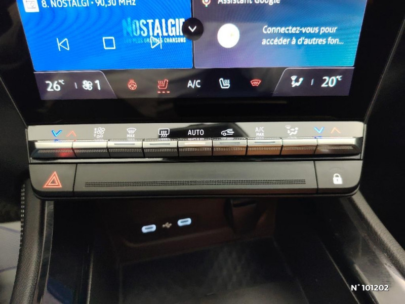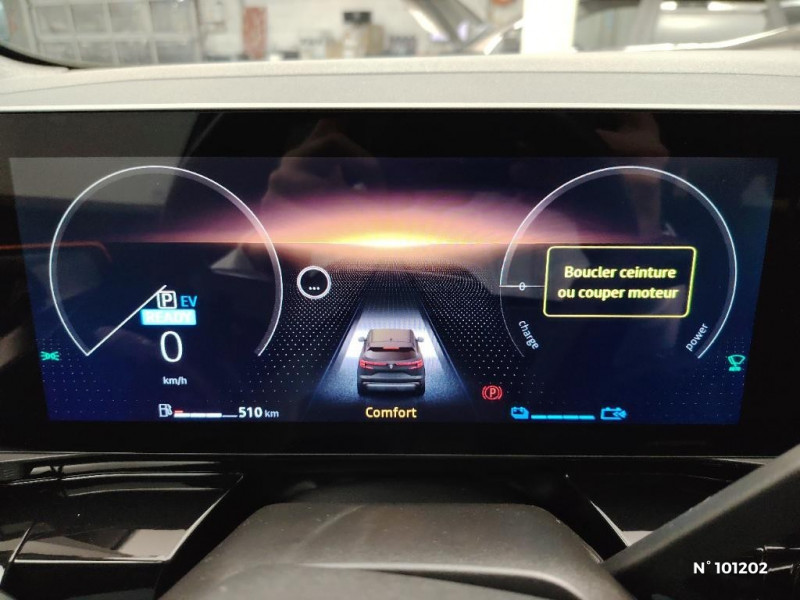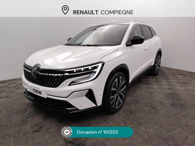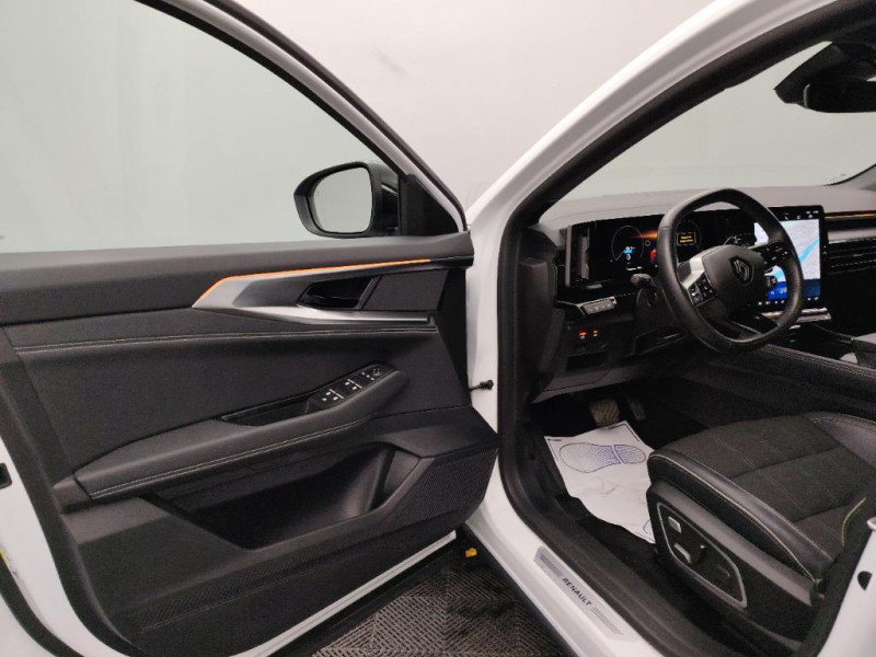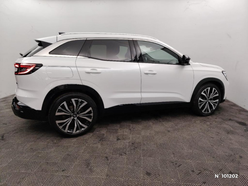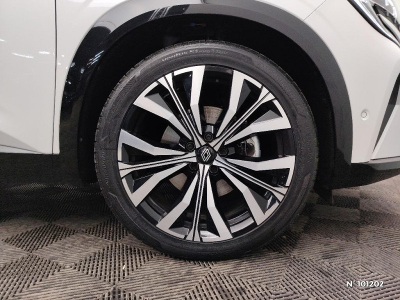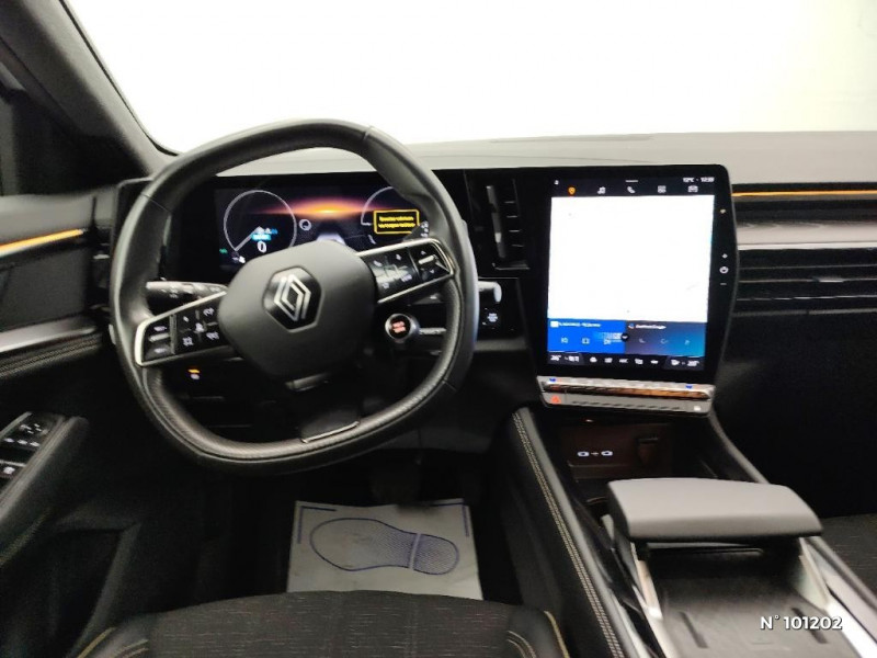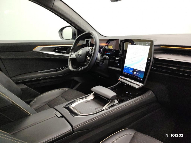 Volant chauffant / Airbags latéraux, milieu AV et rideaux / Alerte de distance de sécurité / Freinage actif d'urgence urbain (piéton + cycliste + intersection) / Kit de gonflage / Sièges avec système ISOFIX / Avertisseur d'angle mort et prévention sortie de voie en cas de dépassement / Frein de parking électrique avec fonction Auto-Hold / Caméra 3D vision 360° / Easy park assist et aides au parking avant, arrière et latérale / Feux AV full LED Adaptative Vision / Banquette AR coulissante 1/3-2/3 avec accoudoir central / Console centrale avec repose main coulissant / Faux plancher de coffre / Hayon motorisé main libre / Miroir de surveillance enfants / Lumière d'ambiance personnalisable / Pare-brise chauffant / Rétroviseur intérieur électrochrome sans cadre / Rétroviseurs extérieurs électriques à mémoire, dégivrants, rabattables automatiquement / Siège conducteur électrique avec réglage lombaire et fonction massage / Ciel de toit gris anthracite / Clignotants AR dynamiques / Feux AR à LED avec effet 3D / Insert de tableau de bord en bois véritable / Jantes alliage 20" Effie diamantées noir / Sellerie mixte similicuir / tissu carbone foncé avec surpiqures or / Seuil de portes / 2 prises USB à l'AV et à l'AR / Navigation Google Maps / Tableau de bord full numérique 12,3'' / Sortie sécurisée des occupants / Eclairage d'accompagnement au sol avec projection logo / Système Multimédia openR link 12" : navigation, services Google, audio Arkamys Auditorium / Sellerie mixte / tissu noir avec surpiqures or/ textile enduit grainé / Alerte franchissement de ligne et assistant maintien dans la voie / Avertisseur de sortie de stationnement en marche AR avec freinage d'urgence automatique / Pré-équipement alarme / Barres de toit longitudinales / Commutation automatique des feux de route/croisement / Multi-sense / Carte Renault accès et démarrage mains libres