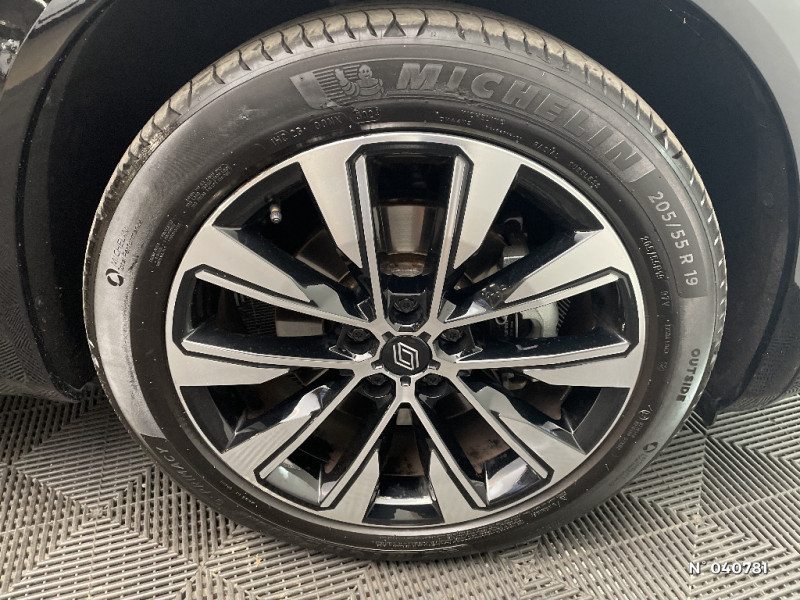 Feux AV full LED Adaptative Vision / Frein de parking électrique avec fonction Auto-Hold / Banquette AR coulissante 1/3-2/3 avec accoudoir central / Console centrale avec repose main coulissant / Faux plancher de coffre / Miroir de surveillance enfants / Lumière d'ambiance personnalisable / Rétroviseur intérieur électrochrome sans cadre / Ciel de toit gris anthracite / Jantes alliage 19" Komah diamantées noir / 2 prises USB à l'AV et à l'AR / Navigation Google Maps / Tableau de bord full numérique 12,3'' / Alerte franchissement de ligne et assistant maintien dans la voie / Pré-équipement alarme / Système Multimédia openR link 12" : navigation, services Google, audio Arkamys Auditorium / Sellerie mixte / tissu dégradé de gris / textile enduit grainé / Alerte détection de fatigue / Prédisposition éthylotest / Détection intelligente des limitations de vitesse et prévention survitesse / My Safety switch (raccourci vers configuration personnalisée des aides à la conduite) / Boîte de vitesse automatique 4 rapports / Aide au parking AV/AR et latéral / Commutation automatique des feux de route/croisement / Multi-sense / Carte Renault accès et démarrage mains libres / Airbags latéraux, milieu AV et rideaux / Alerte de distance de sécurité / Kit de gonflage / Sièges avec système ISOFIX