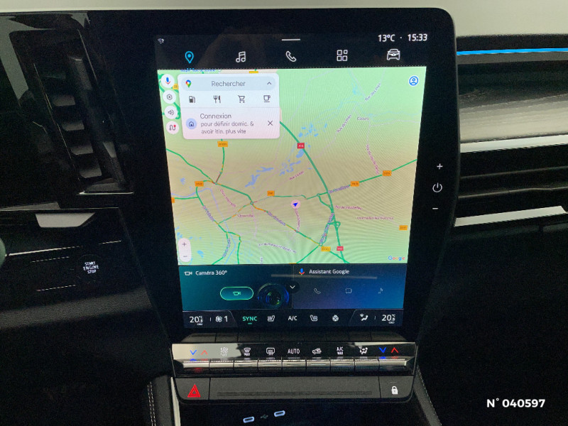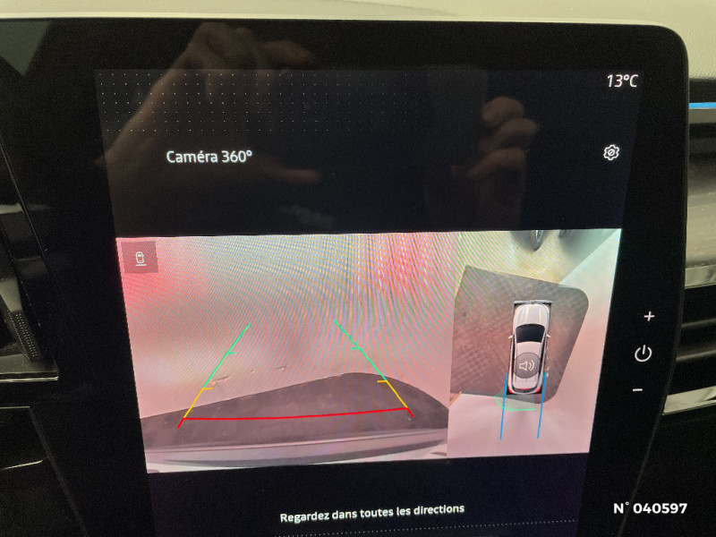 Console centrale avec repose main coulissant / Faux plancher de coffre / Hayon motorisé main libre / Miroir de surveillance enfants / Lumière d'ambiance personnalisable / Rétroviseur intérieur électrochrome sans cadre / Rétroviseurs extérieurs électriques à mémoire, dégivrants, rabattables automatiquement / Siège conducteur électrique avec réglage lombaire et fonction massage / Ciel de toit gris anthracite / Clignotants AR dynamiques / Feux AR à LED avec effet 3D / Insert de tableau de bord en bois véritable / Jantes alliage 20" Effie diamantées noir / Sellerie mixte similicuir / tissu carbone foncé avec surpiqures or / Seuil de portes / 2 prises USB à l'AV et à l'AR / Navigation Google Maps / Système multimédia OpenR Link avec écran tactile 12" et services Google / Tableau de bord full numérique 12,3'' / Alerte franchissement de ligne et assistant maintien dans la voie / Avertisseur de sortie de stationnement en marche AR avec freinage d'urgence automatique / Pré-équipement alarme / Sortie sécurisée des occupants / Classe energetique 1 / Barres de toit longitudinales / Peinture opaque / Aide au parking AV/AR et latéral / Commutation automatique des feux de route/croisement / Multi-sense / Carte Renault accès et démarrage mains libres / Volant chauffant / Airbags latéraux, milieu AV et rideaux / Alerte de distance de sécurité / Freinage actif d'urgence urbain (piéton + cycliste + intersection) / Kit de gonflage / Sièges avec système ISOFIX / Avertisseur d'angle mort et prévention sortie de voie en cas de dépassement / Classe energetique B / Notice d'utilisation digitale embarqué dans le système multimédia du véhicule / Caméra 3D vision 360° / Feux AV full LED Adaptative Vision / Banquette AR coulissante 1/3-2/3 avec accoudoir central