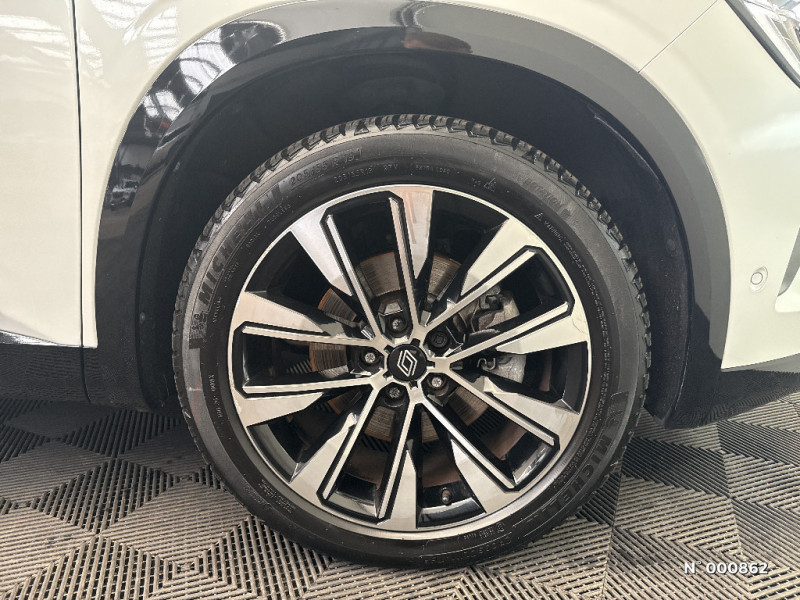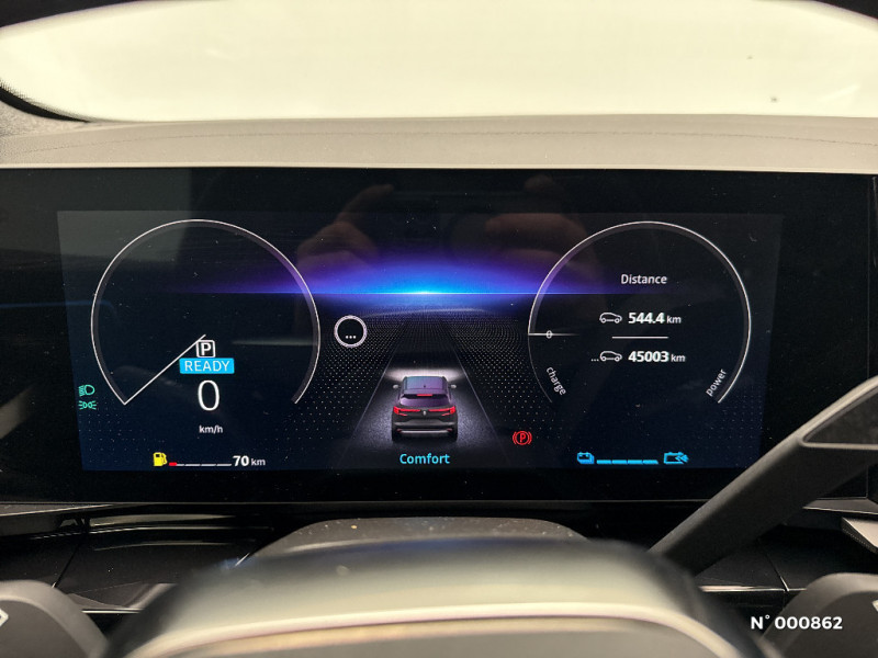 Faux plancher de coffre / Frein de parking électrique avec fonction Auto-Hold / Freinage actif d'urgence urbain (piéton + cycliste + intersection) / Jantes alliage 19" Komah diamantées noir / Kit de gonflage / Lumière d'ambiance personnalisable / Miroir de surveillance enfants / Multi-sense / Navigation Google Maps / Notice d'utilisation digitale embarqué dans le système multimédia du véhicule / Peinture opaque / Pré-équipement alarme / Rétroviseur intérieur électrochrome sans cadre / Sellerie mixte / tissu dégradé de gris / textile enduit grainé / Sellerie mixte textile enduit grainé / tissu dégradé de gris / Sièges avec système ISOFIX / Système multimédia OpenR Link avec écran tactile 12" et services Google / Système Multimédia openR link 12" : navigation, services Google, audio Arkamys Auditorium / Tableau de bord full numérique 12,3'' / 2 prises USB à l'AV et à l'AR / Aide au parking AV/AR et latéral / Airbags latéraux, milieu AV et rideaux / Alerte de distance de sécurité / Alerte franchissement de ligne et assistant maintien dans la voie / Banquette AR coulissante 1/3-2/3 avec accoudoir central / Carte Renault accès et démarrage mains libres / Ciel de toit gris anthracite / Classe energetique B / Classe energetique 1 / Commutation automatique des feux de route/croisement / Console centrale avec repose main coulissant / Feux AV full LED Adaptative Vision
