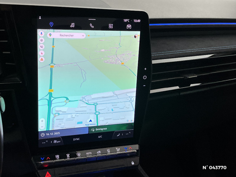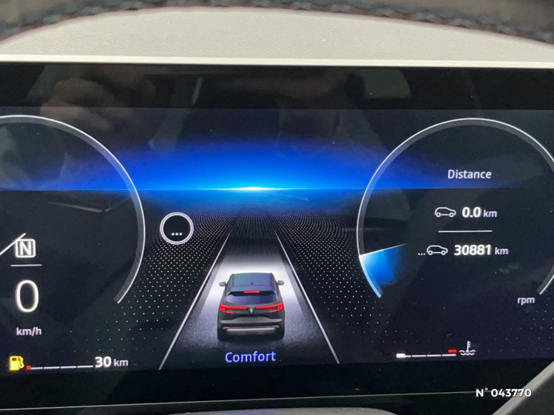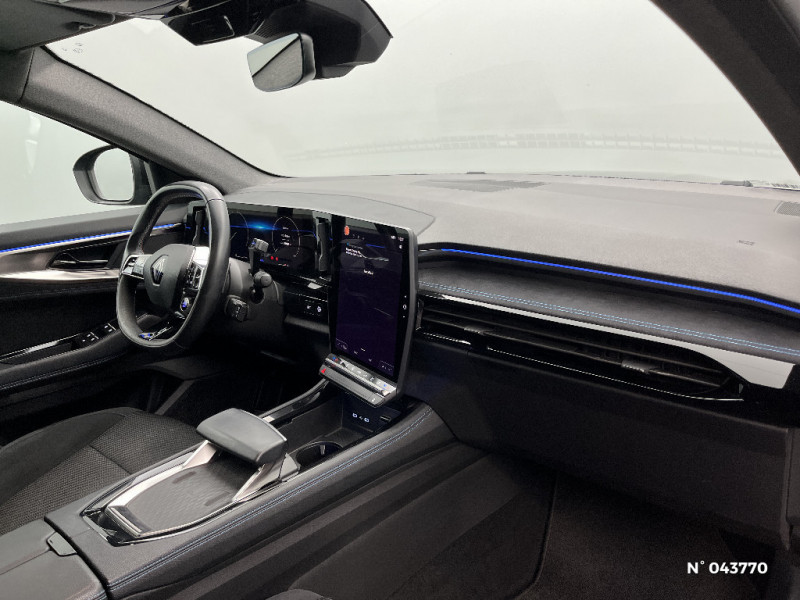 Barres de toit longitudinales / Système Multimédia openR link 12" : navigation, services Google, audio Arkamys Auditorium / Aide au parking AV/AR et latéral / Commutation automatique des feux de route/croisement / Multi-sense / Carte Renault accès et démarrage mains libres / Airbags latéraux, milieu AV et rideaux / Alerte de distance de sécurité / Freinage actif d'urgence urbain (piéton + cycliste + intersection) / Kit de gonflage / Sièges avec système ISOFIX / Frein de parking électrique avec fonction Auto-Hold / Notice d'utilisation digitale embarqué dans le système multimédia du véhicule / Feux AV full LED Adaptative Vision / Console centrale avec repose main coulissant / Faux plancher de coffre / Miroir de surveillance enfants / Lumière d'ambiance personnalisable / Rétroviseur intérieur électrochrome sans cadre / Ciel de toit gris anthracite / Clignotants AR dynamiques / Feux AR à LED avec effet 3D / Jantes alliage 20" Daytona diamantées noir / Pack Design esprit Alpine extérieur / Pack Design esprit Alpine intérieur / Sellerie mixte tissu carbone / alcantara avec surpiqures bleu / Seuil de portes / Volant cuir & Alcantara et surpiqures bleu/blanc/rouge / 2 prises USB à l'AV et à l'AR / Navigation Google Maps / Système multimédia OpenR Link avec écran tactile 12" et services Google / Tableau de bord full numérique 12,3'' / Alerte franchissement de ligne et assistant maintien dans la voie / Pré-équipement alarme / Evolution multimedia 1 / Classe energetique 1