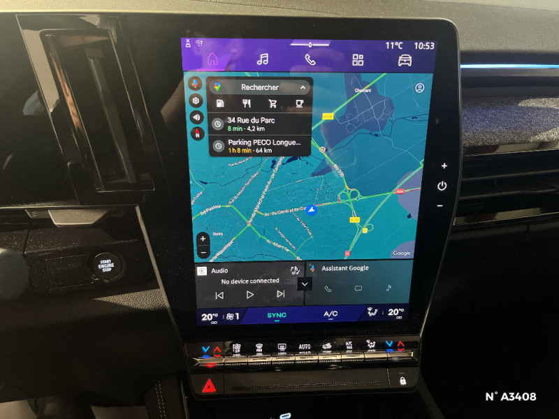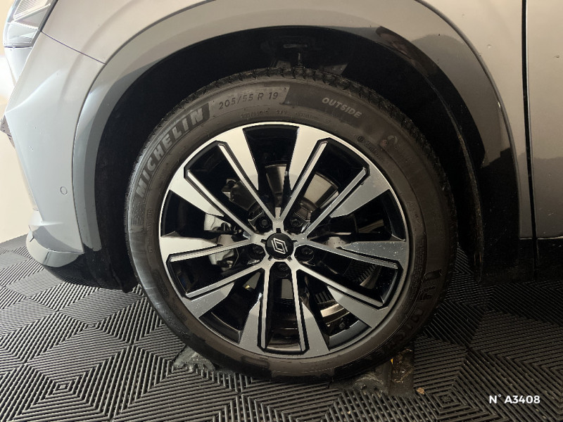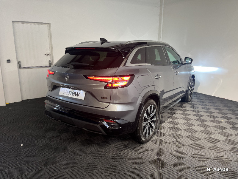 Rétroviseur intérieur électrochrome sans cadre / Sièges avec système ISOFIX / Sortie sécurisée des occupants / Système Multimédia openR link 12" : navigation, services Google, audio Arkamys Auditorium / Aide au parking AV/AR et latéral / Airbags latéraux, milieu AV et rideaux / Alerte de distance de sécurité / Alerte détection de fatigue / Alerte franchissement de ligne et assistant maintien dans la voie / Avertisseur d'angle mort et prévention sortie de voie en cas de dépassement / Avertisseur de sortie de stationnement en marche AR avec freinage d'urgence automatique / Barres de toit longitudinales / Boîte de vitesse hybride multimode 6 rapports / Carte Renault accès et démarrage mains libres / Ciel de toit gris anthracite / Clignotants AR dynamiques / Console centrale avec repose main coulissant / Détection intelligente des limitations de vitesse et prévention survitesse / Faux plancher de coffre / Feux AR à LED avec effet 3D / Feux LED adaptive vision (avec fonction antibrouillard intégrée) / Frein de parking électrique avec fonction Auto-Hold / Jantes alliage 19" Komah diamantées noir brillant / Kit de gonflage / Lumière d'ambiance personnalisable / Maintenance connectée, incluse pendant 8 ans / Mise à jour système (via firmware over the air FOTA), inclus pendant 5 ans / Multi-sense / My Safety switch (raccourci vers configuration personnalisée des aides à la conduite) / Navigation Google Maps / Notice d'utilisation digitale embarqué dans le système multimédia du véhicule / Pack connected driving, inclus pendant 5 ans / Pack contrôle à distance (via l'application My Renault), inclus pendant 5 ans / Prédisposition éthylotest / Pré-équipement alarme / Tableau de bord full numérique 12,3'' / 2 prises USB à l'AV et à l'AR / Sellerie mixte textile refined/tissu gris clair avec motif embossé