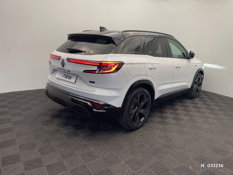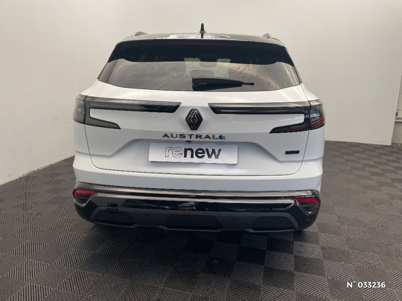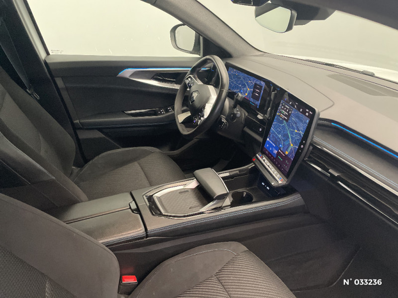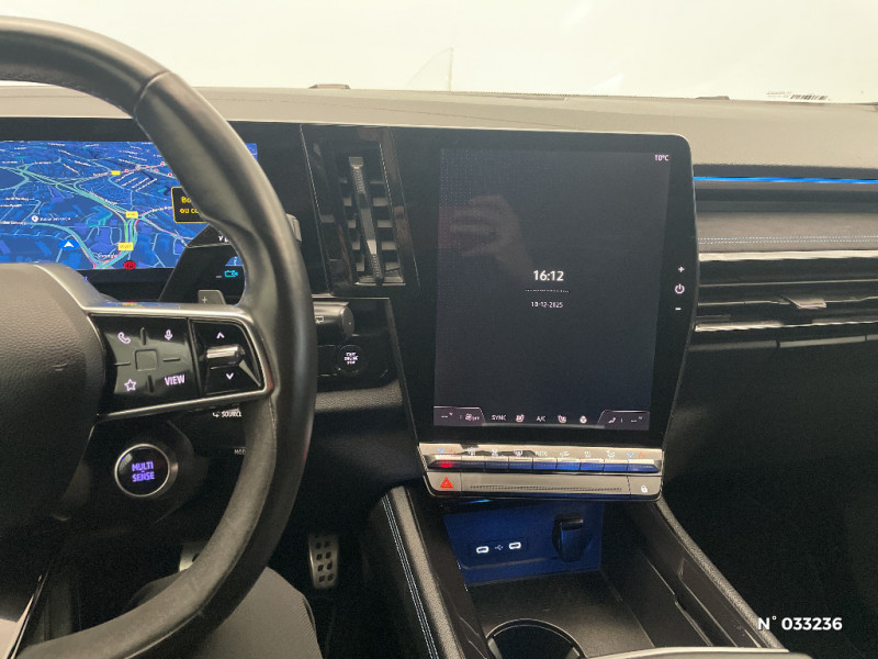Notice d'utilisation digitale embarqué dans le système multimédia du véhicule / Caméra 3D vision 360° / Easy park assist et aides au parking avant, arrière et latérale / Feux AV full LED Adaptative Vision / Active driver assist régulateur de vitesse adaptatif intelligent + centrage dans la voie / Conduite hybride prédictive / Eclairage d'accompagnement au sol avec projection logo / Système Multimédia openR link 12" : navigation, services Google, audio Arkamys Auditorium / Barres de toit longitudinales / Peinture opaque / Aide au parking AV/AR et latéral / Commutation automatique des feux de route/croisement / Multi-sense / Carte Renault accès et démarrage mains libres / Appuie-têtes AV grand confort / Banquette AR coulissante 1/3-2/3 avec accoudoir central / Console centrale avec repose main coulissant / Faux plancher de coffre / Hayon motorisé main libre / Miroir de surveillance enfants / Lumière d'ambiance personnalisable / Rétroviseur intérieur électrochrome sans cadre / Rétroviseurs extérieurs électriques à mémoire, dégivrants, rabattables automatiquement / Siège conducteur électrique avec réglage lombaire et fonction massage, siège passager électrique / Alerte franchissement de ligne et assistant maintien dans la voie / Avertisseur de sortie de stationnement en marche AR avec freinage d'urgence automatique / Pré-équipement alarme / Sortie sécurisée des occupants / Classe energetique 1 / Ciel de toit gris anthracite / Clignotants AR dynamiques / Feux AR à LED avec effet 3D / Jantes alliage 20" Daytona diamantées noir / Pack Design esprit Alpine extérieur / Pack Design esprit Alpine intérieur / Sellerie mixte tissu carbone / alcantara avec surpiqures bleu / Seuil de portes / Volant cuir & Alcantara et surpiqures bleu/blanc/rouge / 2 prises USB à l'AV et à l'AR / Navigation Google Maps / Système multimédia OpenR Link avec écran tactile 12" et services Google / Tableau de bord full numérique 12,3'' / Volant chauffant / Airbags latéraux, milieu AV et rideaux / Alerte de distance de sécurité / Freinage actif d'urgence urbain (piéton + cycliste + intersection) / Kit de gonflage / Sièges avec système ISOFIX / Avertisseur d'angle mort et prévention sortie de voie en cas de dépassement / Active driver assist