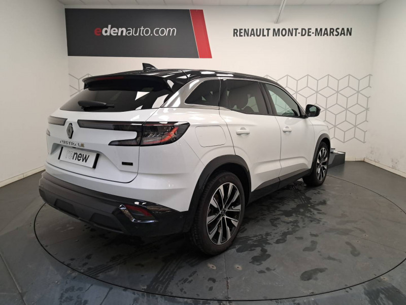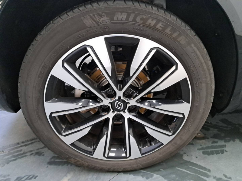 2 prises USB à l'AV et à l'AR / Aide au parking AV/AR et latéral / Airbags latéraux, milieu AV et rideaux / Alerte de distance de sécurité / Alerte franchissement de ligne et assistant maintien dans la voie / Banquette AR coulissante 1/3-2/3 avec accoudoir central / Carte Renault accès et démarrage mains libres / Ciel de toit gris anthracite / Commutation automatique des feux de route/croisement / Console centrale avec repose main coulissant / Faux plancher de coffre / Feux AV full LED Adaptative Vision / Freinage actif d'urgence urbain (piéton + cycliste + intersection) / Frein de parking électrique avec fonction Auto-Hold / Jantes alliage 19" Komah diamantées noir / Kit de gonflage / Lumière d'ambiance personnalisable / Miroir de surveillance enfants / Multi-sense / Navigation Google Maps / Pré-équipement alarme / Rétroviseur intérieur électrochrome sans cadre / Sellerie mixte / tissu dégradé de gris / textile enduit grainé / Sièges avec système ISOFIX / Système Multimédia openR link 12" : navigation, services Google, audio Arkamys Auditorium / Tableau de bord full numérique 12,3''