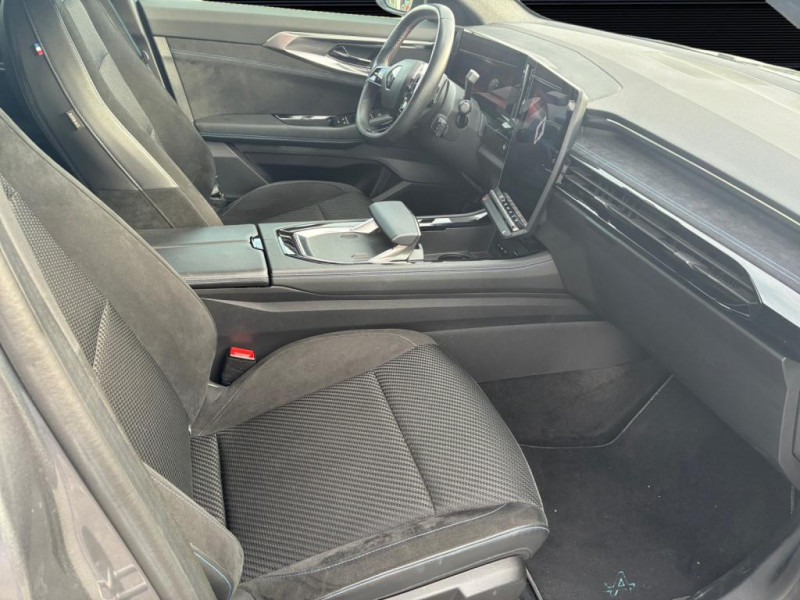 multimédia du véhicule / Pédalier en aluminium / Réglage en hauteur du siège passager / Renault MULTI-SENSE (choix des modes de conduite) / Rétroviseur intérieur électrochrome sans contour / Sellerie Mixte tissu et Alcantra avec surpiqûres bleues / Sièges avant réglables manuellement / Tableau de bord open R 12,3" / Traitement sonore Arkamys Auditorium avec 6 haut-parleurs / Volant spécifique avec insert Alcantara