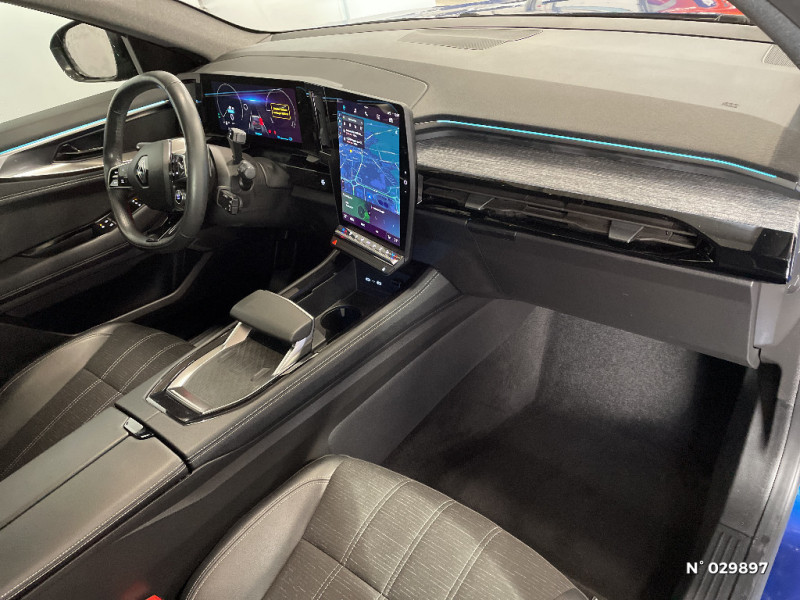 Ciel de toit gris anthracite / Jantes alliage 19" Komah diamantées noir / Sellerie mixte similicuir / tissu dégradé de gris / 2 prises USB à l'AV et à l'AR / Navigation Google Maps / Peinture opaque / Aide au parking AV/AR et latéral / Commutation automatique des feux de route/croisement / Multi-sense / Carte Renault accès et démarrage mains libres / Airbags latéraux, milieu AV et rideaux / Alerte de distance de sécurité / Freinage actif d'urgence urbain (piéton + cycliste + intersection) / Kit de gonflage / Sièges avec système ISOFIX / Classe energetique B / Notice d'utilisation digitale embarqué dans le système multimédia du véhicule / Feux AV full LED Adaptative Vision / Banquette AR coulissante 1/3-2/3 avec accoudoir central / Console centrale avec repose main coulissant / Faux plancher de coffre / Miroir de surveillance enfants / Lumière d'ambiance personnalisable / Rétroviseur intérieur électrochrome sans cadre / Système multimédia OpenR Link avec écran tactile 12" et services Google / Tableau de bord full numérique 12,3'' / Alerte franchissement de ligne et assistant maintien dans la voie / Pré-équipement alarme / Classe energetique 1