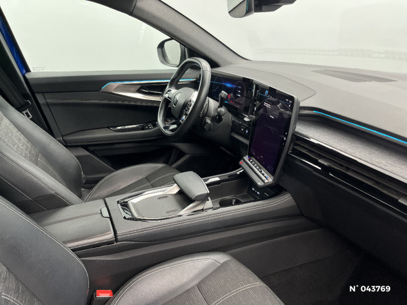 Pré-équipement alarme / Evolution multimedia 1 / Classe energetique 1 / Système Multimédia openR link 12" : navigation, services Google, audio Arkamys Auditorium / Ciel de toit gris anthracite / Jantes alliage 19" Komah diamantées noir / Sellerie mixte similicuir / tissu dégradé de gris / 2 prises USB à l'AV et à l'AR / Navigation Google Maps / Système multimédia OpenR Link avec écran tactile 12" et services Google / Tableau de bord full numérique 12,3'' / Alerte franchissement de ligne et assistant maintien dans la voie / Kit de gonflage / Sièges avec système ISOFIX / Notice d'utilisation digitale embarqué dans le système multimédia du véhicule / Feux AV full LED Adaptative Vision / Banquette AR coulissante 1/3-2/3 avec accoudoir central / Console centrale avec repose main coulissant / Faux plancher de coffre / Miroir de surveillance enfants / Lumière d'ambiance personnalisable / Rétroviseur intérieur électrochrome sans cadre / Peinture opaque / Aide au parking AV/AR et latéral / Commutation automatique des feux de route/croisement / Multi-sense / Carte Renault accès et démarrage mains libres / Airbags latéraux, milieu AV et rideaux / Alerte de distance de sécurité / Freinage actif d'urgence urbain (piéton + cycliste + intersection)