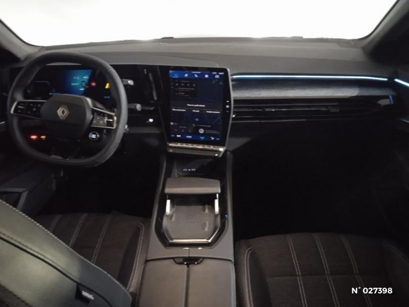 Alerte franchissement de ligne et assistant maintien dans la voie / Système Multimédia openR link 12" : navigation, services Google, audio Arkamys Auditorium / Sellerie mixte / tissu dégradé de gris / textile enduit grainé / Alerte détection de fatigue / Prédisposition éthylotest / Détection intelligente des limitations de vitesse et prévention survitesse / My Safety switch (raccourci vers configuration personnalisée des aides à la conduite) / Boîte de vitesse automatique 4 rapports / Airbags latéraux, milieu AV et rideaux / Aide au parking AV/AR et latéral / Commutation automatique des feux de route/croisement / Alerte de distance de sécurité / Kit de gonflage / Sièges avec système ISOFIX / Frein de parking électrique avec fonction Auto-Hold / Feux AV full LED Adaptative Vision / Banquette AR coulissante 1/3-2/3 avec accoudoir central / Console centrale avec repose main coulissant / Faux plancher de coffre / Miroir de surveillance enfants / Lumière d'ambiance personnalisable / Rétroviseur intérieur électrochrome sans cadre / Ciel de toit gris anthracite / Jantes alliage 19" Komah diamantées noir / 2 prises USB à l'AV et à l'AR / Navigation Google Maps / Tableau de bord full numérique 12,3'' / Multi-sense / Carte Renault accès et démarrage mains libres / Pré-équipement alarme