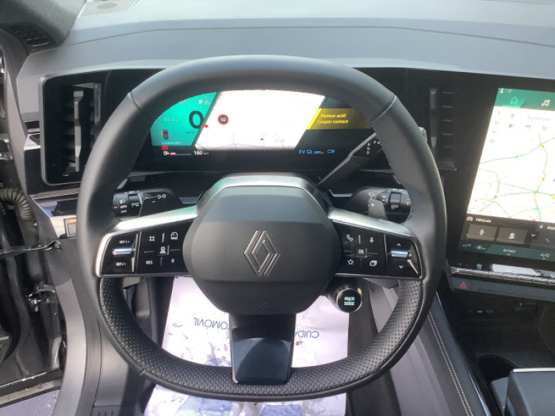 2 prises USB a l'AV et a l'AR / Aide au parking AV/AR et lateral / Airbags lateraux, milieu AV et rideaux / Alerte de distance de securite / Alerte detection de fatigue / Alerte franchissement de ligne et assistant maintien dans la voie / Banquette AR coulissante 1/3-2/3 avec accoudoir central / Boite de vitesse automatique 4 rapports / Carte Renault acces et demarrage mains libres / Ciel de toit gris anthracite / Commutation automatique des feux de route/croisement / Console centrale avec repose main coulissant / Detection intelligente des limitations de vitesse et prevention survitesse / Faux plancher de coffre / Feux AV full LED Adaptative Vision / Frein de parking electrique avec fonction Auto-Hold / Jantes alliage 19" Komah diamantees noir / Kit de gonflage / Lumiere d'ambiance personnalisable / Miroir de surveillance enfants / Multi-sense / My Safety switch / Navigation Google Maps / Retroviseur interieur electrochrome sans cadre / Sellerie mixte / tissu degrade de gris / textile enduit graine / Sieges avec systeme ISOFIX / Systeme Multimedia openR link 12" : navigation, services Google, audio Arkamys Auditorium / Tableau de bord full numerique 12,3''