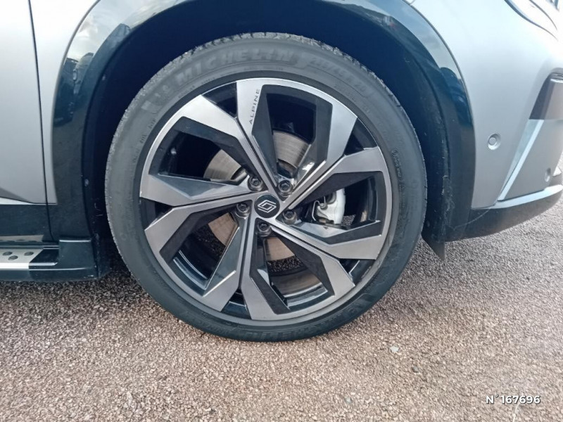 Pack Design esprit Alpine extérieur / Pack Design esprit Alpine intérieur / Sellerie mixte tissu carbone / alcantara avec surpiqures bleu / Seuil de portes / Volant cuir & Alcantara et surpiqures bleu/blanc/rouge / 2 prises USB à l'AV et à l'AR / Navigation Google Maps / Système multimédia OpenR Link avec écran tactile 12" et services Google / Tableau de bord full numérique 12,3'' / Alerte franchissement de ligne et assistant maintien dans la voie / Avertisseur de sortie de stationnement en marche AR avec freinage d'urgence automatique / Pré-équipement alarme / Sortie sécurisée des occupants / Jantes alliage 20" Daytona diamantées noir / Pare-brise chauffant / Rétroviseur intérieur électrochrome sans cadre / Rétroviseurs extérieurs électriques à mémoire, dégivrants, rabattables automatiquement / Siège conducteur électrique avec réglage lombaire et fonction massage, siège passager électrique / Ciel de toit gris anthracite / Volant chauffant / Clignotants AR dynamiques / Feux AR à LED avec effet 3D / Airbags latéraux, milieu AV et rideaux / Alerte de distance de sécurité / Freinage actif d'urgence urbain (piéton + cycliste + intersection) / Kit de gonflage / Sièges avec système ISOFIX / Avertisseur d?angle mort et prévention sortie de voie en cas de dépassement / Active driver assist / Notice d?utilisation digitale embarqué dans le système multimédia du véhicule / Caméra 3D vision 360° / Easy park assist et aides au parking avant, arrière et latérale / Feux AV full LED Adaptative Vision / Appuie-têtes AV grand confort / Banquette AR coulissante 1/3-2/3 avec accoudoir central / Console centrale avec repose main coulissant / Faux plancher de coffre / Hayon motorisé main libre / Miroir de surveillance enfants / Lumière d'ambiance personnalisable / Barres de toit longitudinales / Peinture opaque / Commutation automatique des feux de route/croisement / Multi-sense / Carte Renault accès et démarrage mains libres / Classe energetique 1 / Active driver assist régulateur de vitesse adaptatif intelligent + centrage dans la voie / Conduite hybride prédictive / Eclairage d'accompagnement au sol avec projection logo / Système Multimédia openR link 12" : navigation, services Google, audio Arkamys Auditorium