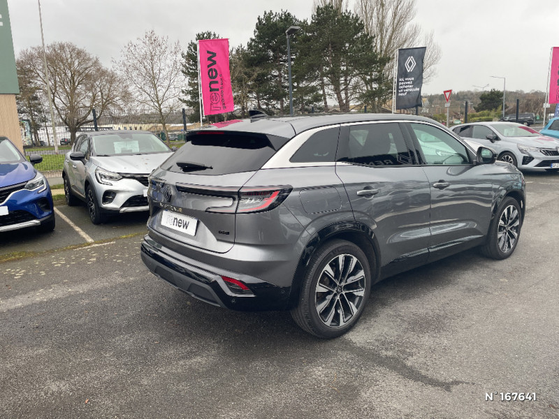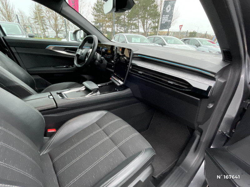 Feux AV full LED Adaptative Vision / Banquette AR coulissante 1/3-2/3 avec accoudoir central / Console centrale avec repose main coulissant / Faux plancher de coffre / Aide au parking AV/AR et latéral / Commutation automatique des feux de route/croisement / Airbags latéraux, milieu AV et rideaux / Alerte de distance de sécurité / Multi-sense / Carte Renault accès et démarrage mains libres / Miroir de surveillance enfants / Lumière d'ambiance personnalisable / Rétroviseur intérieur électrochrome sans cadre / Ciel de toit gris anthracite / Jantes alliage 19" Komah diamantées noir / Sellerie mixte similicuir / tissu dégradé de gris / 2 prises USB à l'AV et à l'AR / Navigation Google Maps / Système multimédia OpenR Link avec écran tactile 12" et services Google / Tableau de bord full numérique 12,3'' / Alerte franchissement de ligne et assistant maintien dans la voie / Pré-équipement alarme / Classe energetique 1 / Système Multimédia openR link 12" : navigation, services Google, audio Arkamys Auditorium / Sellerie mixte / tissu dégradé de gris / textile enduit grainé / Freinage actif d'urgence urbain (piéton + cycliste + intersection) / Kit de gonflage / Sièges avec système ISOFIX / Frein de parking électrique avec fonction Auto-Hold / Notice d?utilisation digitale embarqué dans le système multimédia du véhicule