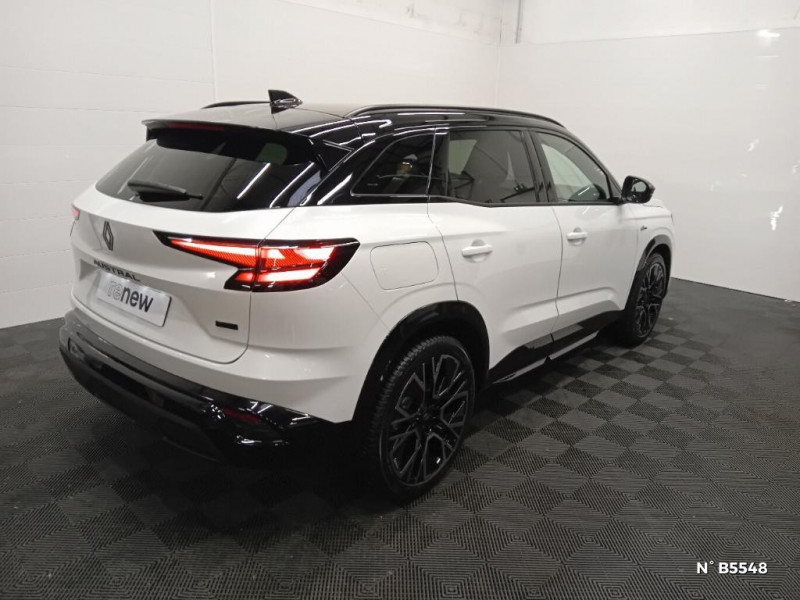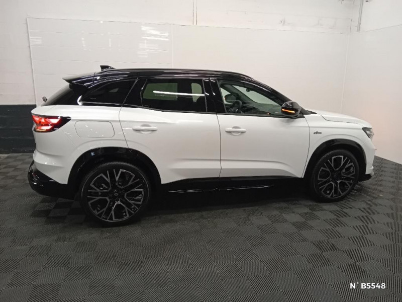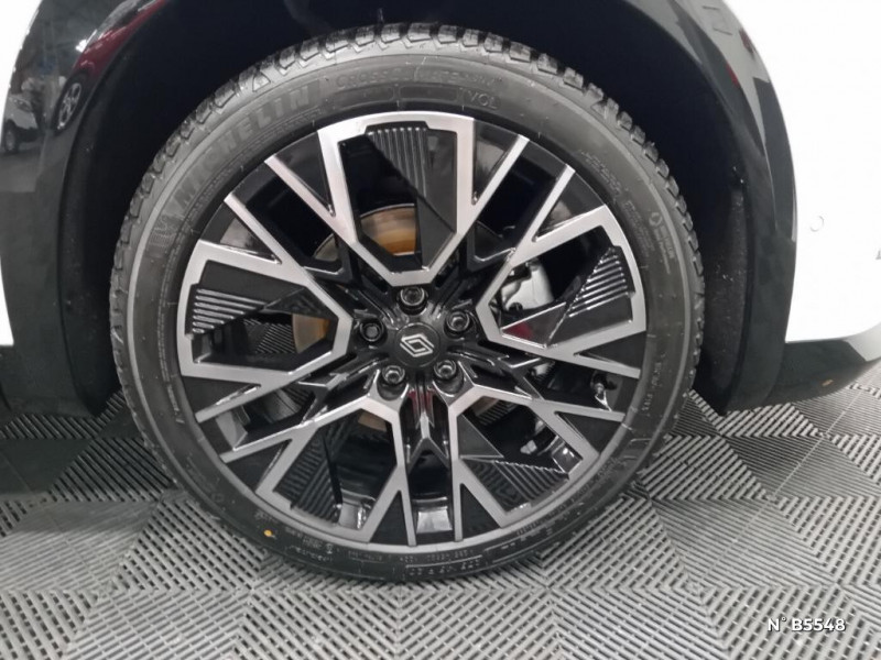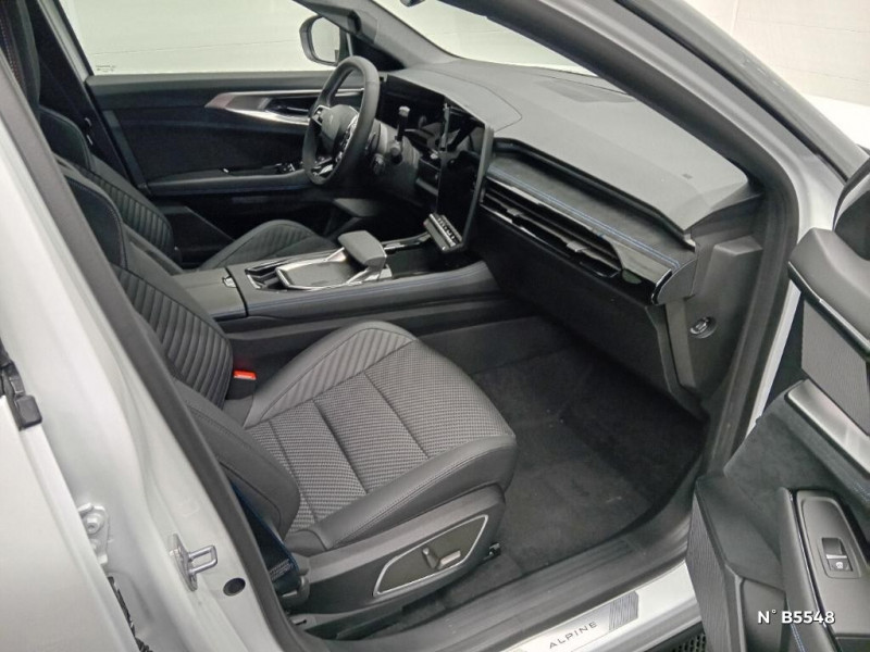 Volant chauffant / 2 prises USB à l'AV et à l'AR / Siège conducteur électrique avec réglage lombaire et fonction massage, siège passager électrique / Ciel de toit gris anthracite / Clignotants AR dynamiques / Console centrale avec repose main coulissant / Détection intelligente des limitations de vitesse et prévention survitesse / Faux plancher de coffre / Feux AR à LED avec effet 3D / Feux LED adaptive vision (avec fonction antibrouillard intégrée) / Frein de parking électrique avec fonction Auto-Hold / Hayon motorisé main libre / Jantes alliage 20" Altitude diamanté noir avec vernis fumé gris / Kit de gonflage / Lumière d'ambiance personnalisable / Maintenance connectée, incluse pendant 8 ans / Mise à jour système (via firmware over the air FOTA), inclus pendant 5 ans / Multi-sense / My Safety switch (raccourci vers configuration personnalisée des aides à la conduite) / Navigation Google Maps / Notice d'utilisation digitale embarqué dans le système multimédia du véhicule / Pack connected driving, inclus pendant 5 ans / Pack contrôle à distance (via l¿application My Renault), inclus pendant 5 ans / Pack Design esprit Alpine extérieur / Active driver assist régulateur de vitesse adaptatif intelligent + centrage dans la voie / Pack Design esprit Alpine intérieur / Prédisposition éthylotest / Pré-équipement alarme / Rétroviseur intérieur électrochrome sans cadre / Sellerie mixte tissu carbone Alcantara® avec surpiqûres bleu, blanc, rouge / Seuil de portes / Sortie sécurisée des occupants / Système de reconnaissance du conducteur / Système ISOFIX sur siège passager & 2 places rang 2 / Système Multimédia openR link 12" : navigation, services Google, audio Arkamys Auditorium / Tableau de bord full numérique 12,3'' / Aide au parking AV/AR et latéral / Airbags latéraux, milieu AV et rideaux / Alerte de distance de sécurité / Alerte détection de fatigue / Alerte franchissement de ligne et assistant maintien dans la voie / Avertisseur d'angle mort et prévention sortie de voie en cas de dépassement / Avertisseur de sortie de stationnement en marche AR avec freinage d'urgence automatique / Banquette AR coulissante 1/3-2/3 avec accoudoir central / Barres de toit longitudinales / Boîte de vitesse hybride multimode 6 rapports / Carte Renault accès et démarrage mains libres