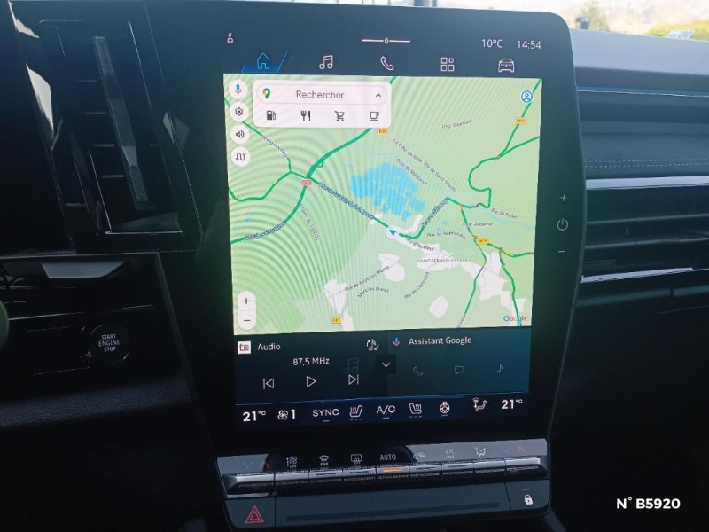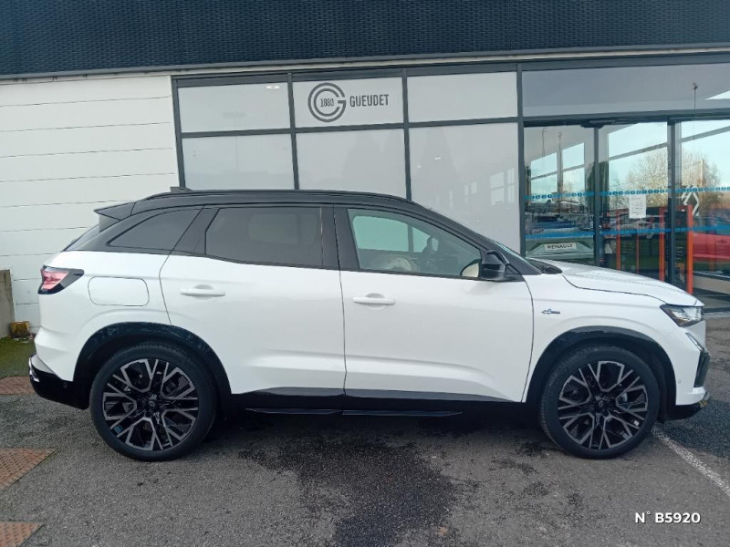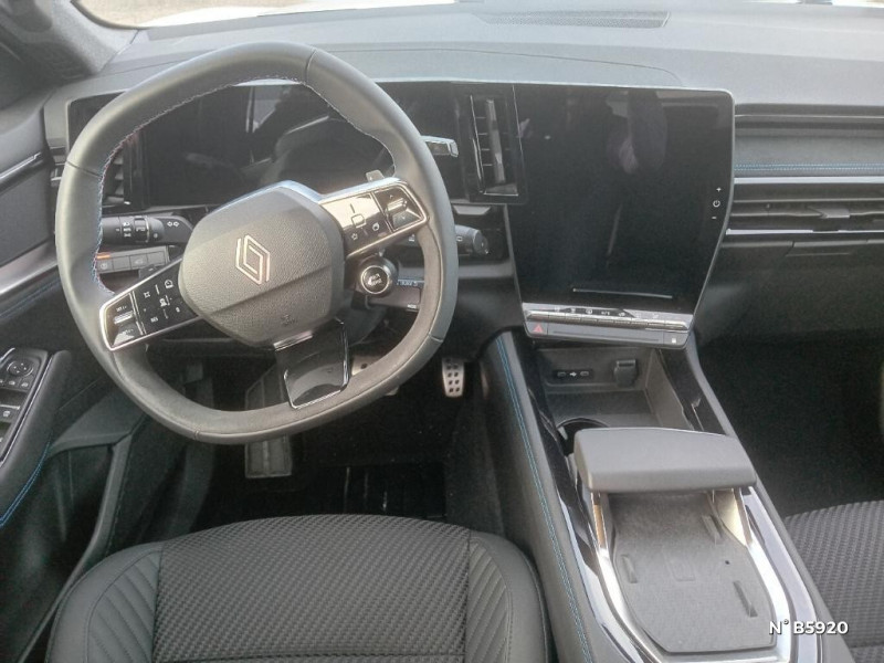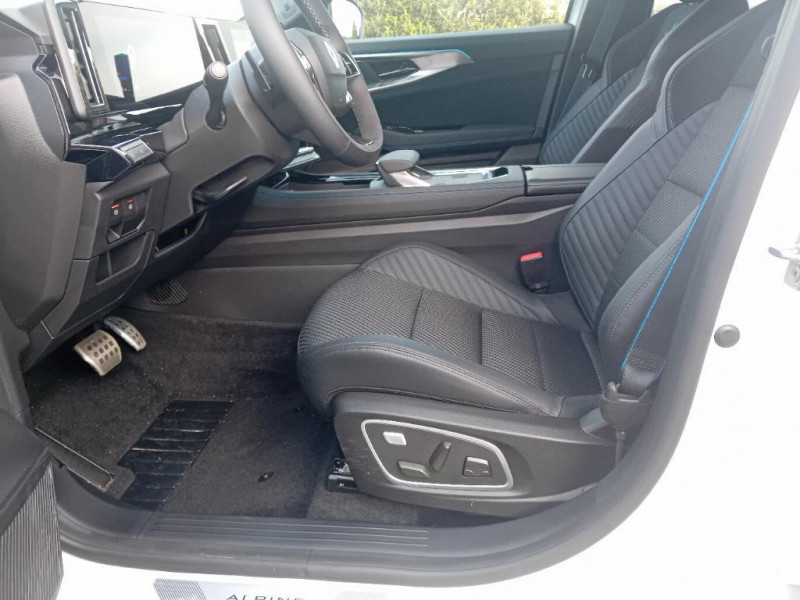 Multi-sense / My Safety switch (raccourci vers configuration personnalisée des aides à la conduite) / Navigation Google Maps / Notice d'utilisation digitale embarqué dans le système multimédia du véhicule / Avertisseur d'angle mort et prévention sortie de voie en cas de dépassement / Avertisseur de sortie de stationnement en marche AR avec freinage d'urgence automatique / Banquette AR coulissante 1/3-2/3 avec accoudoir central / Barres de toit longitudinales / Boîte de vitesse hybride multimode 6 rapports / Carte Renault accès et démarrage mains libres / Ciel de toit gris anthracite / Clignotants AR dynamiques / Console centrale avec repose main coulissant / Alerte franchissement de ligne et assistant maintien dans la voie / Détection intelligente des limitations de vitesse et prévention survitesse / Faux plancher de coffre / Feux AR à LED avec effet 3D / Feux LED adaptive vision (avec fonction antibrouillard intégrée) / Frein de parking électrique avec fonction Auto-Hold / Hayon motorisé main libre / Jantes alliage 20" Altitude diamanté noir avec vernis fumé gris / Kit de gonflage / Lumière d'ambiance personnalisable / Pack connected driving, inclus pendant 5 ans / Pack contrôle à distance (via l¿application My Renault), inclus pendant 5 ans / Pack Design esprit Alpine extérieur / Pack Design esprit Alpine intérieur / Prédisposition éthylotest / Pré-équipement alarme / Rétroviseur intérieur électrochrome sans cadre / Sellerie mixte tissu carbone Alcantara® avec surpiqûres bleu, blanc, rouge / Seuil de portes / Siège conducteur électrique avec réglage lombaire et fonction massage, siège passager électrique / Sortie sécurisée des occupants / Système de reconnaissance du conducteur / Système ISOFIX sur siège passager & 2 places rang 2 / Aide au parking AV/AR et latéral / Airbags latéraux, milieu AV et rideaux / Alerte de distance de sécurité / Alerte détection de fatigue / Système Multimédia openR link 12" : navigation, services Google, audio Arkamys Auditorium / Tableau de bord full numérique 12,3'' / Volant chauffant / 2 prises USB à l'AV et à l'AR / Active driver assist régulateur de vitesse adaptatif intelligent + centrage dans la voie / Maintenance connectée, incluse pendant 8 ans / Mise à jour système (via firmware over the air FOTA), inclus pendant 5 ans