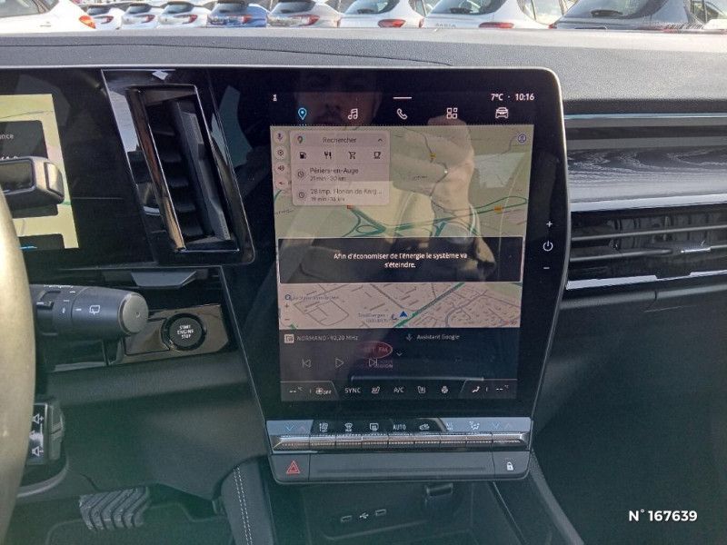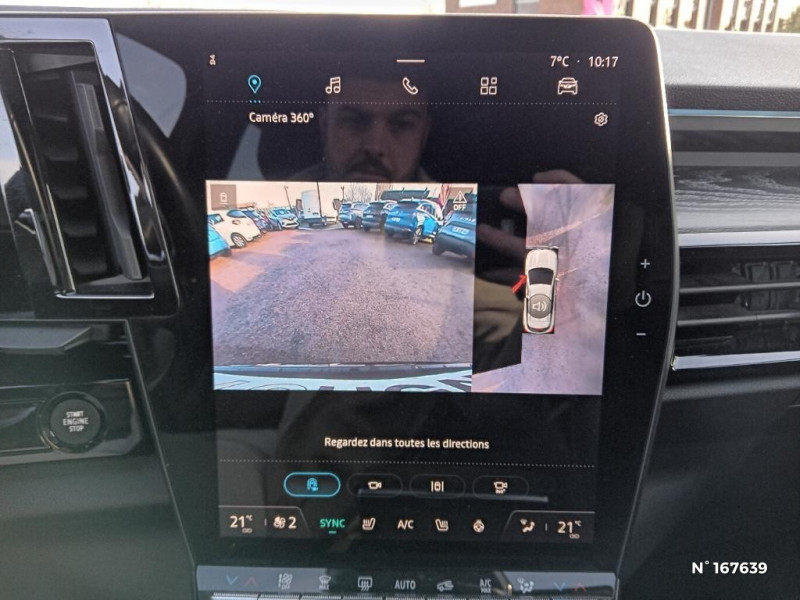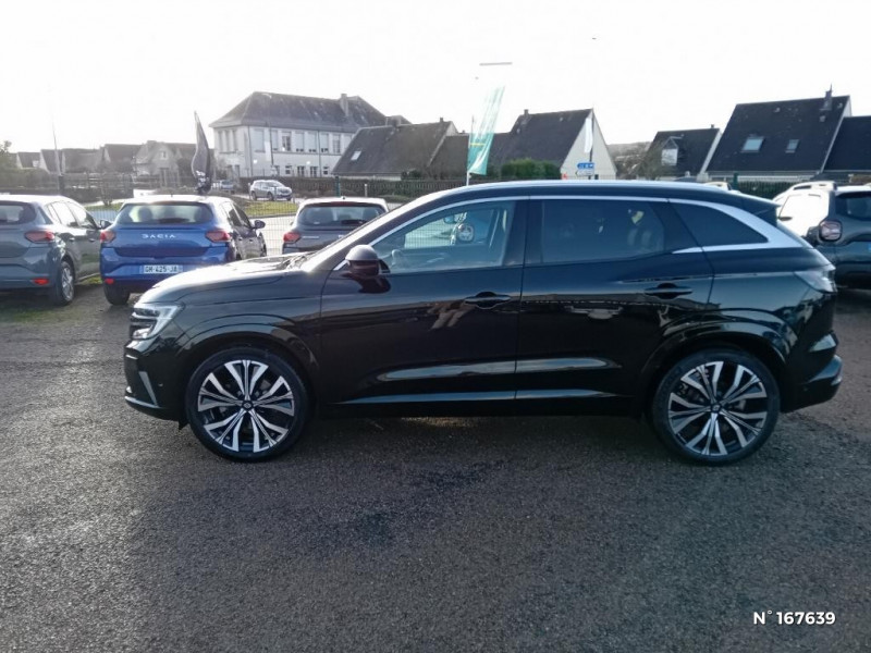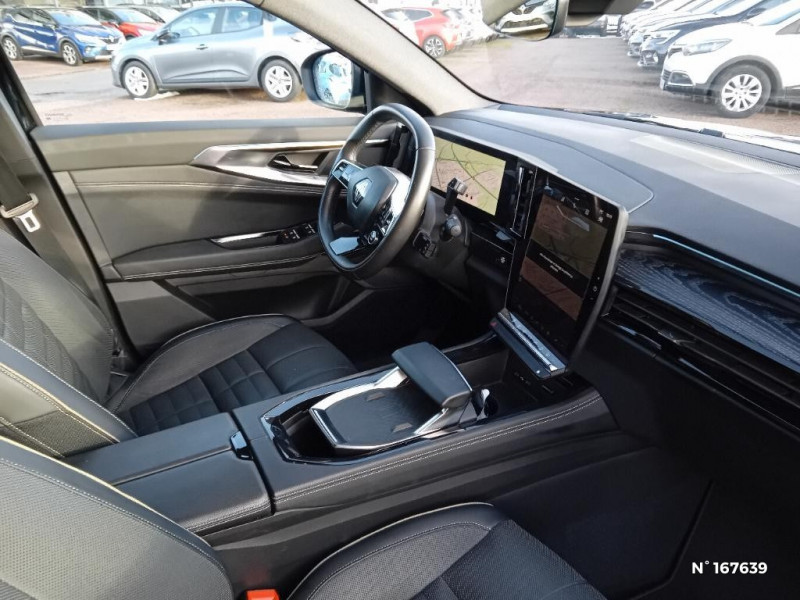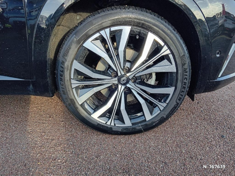 Console centrale avec repose main coulissant / Faux plancher de coffre / Sièges avec système ISOFIX / Système Multimédia openR link 12" : navigation, services Google, audio Arkamys Auditorium / Alerte franchissement de ligne et assistant maintien dans la voie / Avertisseur de sortie de stationnement en marche AR avec freinage d'urgence automatique / Pré-équipement alarme / Sortie sécurisée des occupants / Classe energetique 1 / Eclairage d'accompagnement au sol avec projection logo / Barres de toit longitudinales / Peinture opaque / Aide au parking AV/AR et latéral / Commutation automatique des feux de route/croisement / Multi-sense / Carte Renault accès et démarrage mains libres / Volant chauffant / Hayon motorisé main libre / Miroir de surveillance enfants / Lumière d'ambiance personnalisable / Rétroviseur intérieur électrochrome sans cadre / Rétroviseurs extérieurs électriques à mémoire, dégivrants, rabattables automatiquement / Siège conducteur électrique avec réglage lombaire et fonction massage / Ciel de toit gris anthracite / Clignotants AR dynamiques / Feux AR à LED avec effet 3D / Insert de tableau de bord en bois véritable / Jantes alliage 20" Effie diamantées noir / Sellerie mixte similicuir / tissu carbone foncé avec surpiqures or / Seuil de portes / 2 prises USB à l'AV et à l'AR / Navigation Google Maps / Système multimédia OpenR Link avec écran tactile 12" et services Google / Tableau de bord full numérique 12,3'' / Airbags latéraux, milieu AV et rideaux / Alerte de distance de sécurité / Freinage actif d'urgence urbain (piéton + cycliste + intersection) / Kit de gonflage / Avertisseur d?angle mort et prévention sortie de voie en cas de dépassement / Notice d?utilisation digitale embarqué dans le système multimédia du véhicule / Caméra 3D vision 360° / Easy park assist et aides au parking avant, arrière et latérale / Feux AV full LED Adaptative Vision / Banquette AR coulissante 1/3-2/3 avec accoudoir central