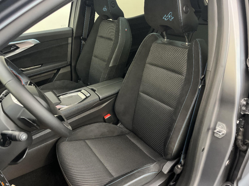 Volant chauffant / Prédisposition éthylotest / Airbags latéraux, milieu AV et rideaux / Alerte de distance de sécurité / Kit de gonflage / Sièges avec système ISOFIX / Avertisseur d?angle mort et prévention sortie de voie en cas de dépassement / Frein de parking électrique avec fonction Auto-Hold / Caméra 3D vision 360° / Easy park assist et aides au parking avant, arrière et latérale / Feux AV full LED Adaptative Vision / Appuie-têtes AV grand confort / Banquette AR coulissante 1/3-2/3 avec accoudoir central / Console centrale avec repose main coulissant / Faux plancher de coffre / Hayon motorisé main libre / Miroir de surveillance enfants / Lumière d'ambiance personnalisable / Pare-brise chauffant / Rétroviseur intérieur électrochrome sans cadre / Rétroviseurs extérieurs électriques à mémoire, dégivrants, rabattables automatiquement / Siège conducteur électrique avec réglage lombaire et fonction massage, siège passager électrique / Ciel de toit gris anthracite / Clignotants AR dynamiques / Feux AR à LED avec effet 3D / Jantes alliage 20" Daytona diamantées noir / Pack Design esprit Alpine extérieur / Pack Design esprit Alpine intérieur / Sellerie mixte tissu carbone / alcantara avec surpiqures bleu / Seuil de portes / 2 prises USB à l'AV et à l'AR / Navigation Google Maps / Tableau de bord full numérique 12,3'' / Alerte franchissement de ligne et assistant maintien dans la voie / Avertisseur de sortie de stationnement en marche AR avec freinage d'urgence automatique / Pré-équipement alarme / Sortie sécurisée des occupants / Active driver assist régulateur de vitesse adaptatif intelligent + centrage dans la voie / Eclairage d'accompagnement au sol avec projection logo / Système Multimédia openR link 12" : navigation, services Google, audio Arkamys Auditorium / Alerte détection de fatigue / Détection intelligente des limitations de vitesse et prévention survitesse / My Safety switch (raccourci vers configuration personnalisée des aides à la conduite) / Boîte de vitesse automatique 4 rapports / Barres de toit longitudinales / Commutation automatique des feux de route/croisement / Multi-sense / Carte Renault accès et démarrage mains libres