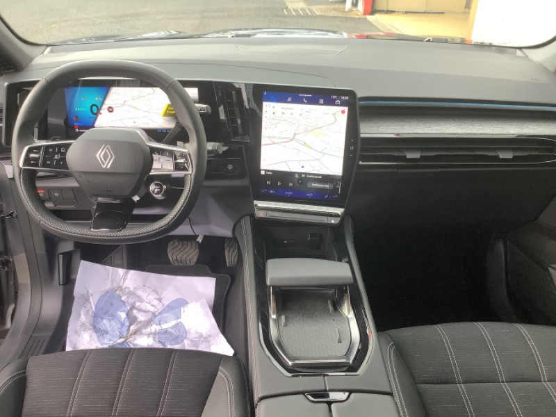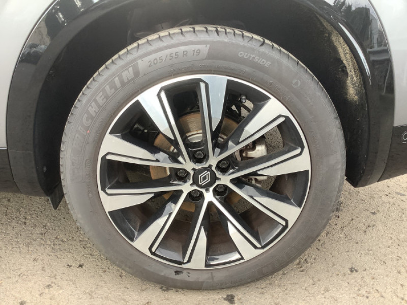 2 prises USB a l'AV et a l'AR / Aide au parking AV/AR et lateral / Airbags lateraux, milieu AV et rideaux / Alerte de distance de securite / Alerte detection de fatigue / Alerte franchissement de ligne et assistant maintien dans la voie / Banquette AR coulissante 1/3-2/3 avec accoudoir central / Boite de vitesse automatique 4 rapports / Carte Renault acces et demarrage mains libres / Ciel de toit gris anthracite / Commutation automatique des feux de route/croisement / Console centrale avec repose main coulissant / Detection intelligente des limitations de vitesse et prevention survitesse / Faux plancher de coffre / Feux AV full LED Adaptative Vision / Frein de parking electrique avec fonction Auto-Hold / Jantes alliage 19" Komah diamantees noir / Kit de gonflage / Lumiere d'ambiance personnalisable / Miroir de surveillance enfants / Multi-sense / My Safety switch / Navigation Google Maps / Retroviseur interieur electrochrome sans cadre / Sellerie mixte / tissu degrade de gris / textile enduit graine / Sieges avec systeme ISOFIX / Systeme Multimedia openR link 12" : navigation, services Google, audio Arkamys Auditorium / Tableau de bord full numerique 12,3''