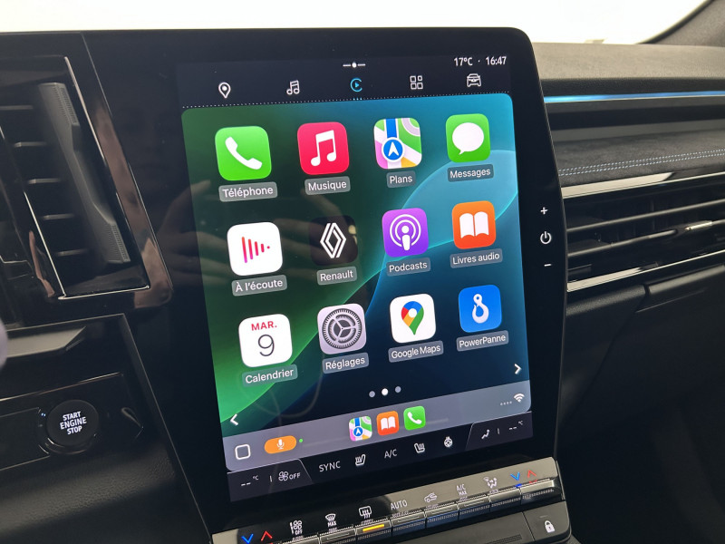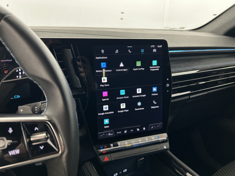 2 prises USB à l'AV et à l'AR / Active driver assist régulateur de vitesse adaptatif intelligent + centrage dans la voie / Airbags latéraux, milieu AV et rideaux / Alerte de distance de sécurité / Alerte franchissement de ligne et assistant maintien dans la voie / Appuie-têtes AV grand confort / Avertisseur d'angle mort et prévention sortie de voie en cas de dépassement / Avertisseur de sortie de stationnement en marche AR avec freinage d'urgence automatique / Banquette AR coulissante 1/3-2/3 avec accoudoir central / Barres de toit longitudinales / Caméra 3D vision 360° / Carte Renault accès et démarrage mains libres / Ciel de toit gris anthracite / Clignotants AR dynamiques / Commutation automatique des feux de route/croisement / Conduite hybride prédictive / Console centrale avec repose main coulissant / Easy park assist et aides au parking AV, AR et latérale / Eclairage d'accompagnement au sol avec projection logo / Faux plancher de coffre / Feux AR à LED avec effet 3D / Feux AV full LED Adaptative Vision / Freinage actif d'urgence urbain (piéton + cycliste + intersection) / Frein de parking électrique avec fonction Auto-Hold / Hayon motorisé main libre / Jantes alliage 20" Daytona diamantées noir / Kit de gonflage / Lumière d'ambiance personnalisable / Miroir de surveillance enfants / Multi-sense / Navigation Google Maps / Pack Design esprit Alpine extérieur / Pack Design esprit Alpine intérieur / Pare-brise chauffant / Pré-équipement alarme / Rétroviseur intérieur électrochrome sans cadre / Rétroviseurs extérieurs électriques à mémoire, dégivrants, rabattables automatiquement / Sellerie mixte tissu carbone / alcantara avec surpiqûres bleues / Seuil de portes / Siège conducteur électrique avec réglage lombaire et fonction massage, siège passager électrique / Sièges avec système ISOFIX / Sortie sécurisée des occupants / Système Multimédia openR link 12" : navigation, services Google, audio Arkamys Auditorium / Tableau de bord full numérique 12,3'' / Volant chauffant / Volant cuir & Alcantara et surpiqûres bleu/blanc/rouge / / 3008,kadjar,