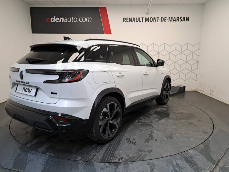 2 prises USB à l'AV et à l'AR / Aide au parking AV/AR et latéral / Airbags latéraux, milieu AV et rideaux / Alerte de distance de sécurité / Alerte détection de fatigue / Alerte franchissement de ligne et assistant maintien dans la voie / Barres de toit longitudinales / Boîte de vitesse automatique 4 rapports / Carte Renault accès et démarrage mains libres / Ciel de toit gris anthracite / Clignotants AR dynamiques / Commutation automatique des feux de route/croisement / Console centrale avec repose main coulissant / Détection intelligente des limitations de vitesse et prévention survitesse / Faux plancher de coffre / Feux AR à LED avec effet 3D / Feux AV full LED Adaptative Vision / Frein de parking électrique avec fonction Auto-Hold / Jantes alliage 20" Daytona diamantées noir / Kit de gonflage / Lumière d'ambiance personnalisable / Miroir de surveillance enfants / Multi-sense / My Safety switch (raccourci vers configuration personnalisée des aides à la conduite) / Navigation Google Maps / Pack Design esprit Alpine extérieur / Pack Design esprit Alpine intérieur / Prédisposition éthylotest / Pré-équipement alarme / Rétroviseur intérieur électrochrome sans cadre / Sellerie mixte tissu carbone / alcantara avec surpiqûres bleues / Seuil de portes / Sièges avec système ISOFIX / Système Multimédia openR link 12" : navigation, services Google, audio Arkamys Auditorium / Tableau de bord full numérique 12,3''